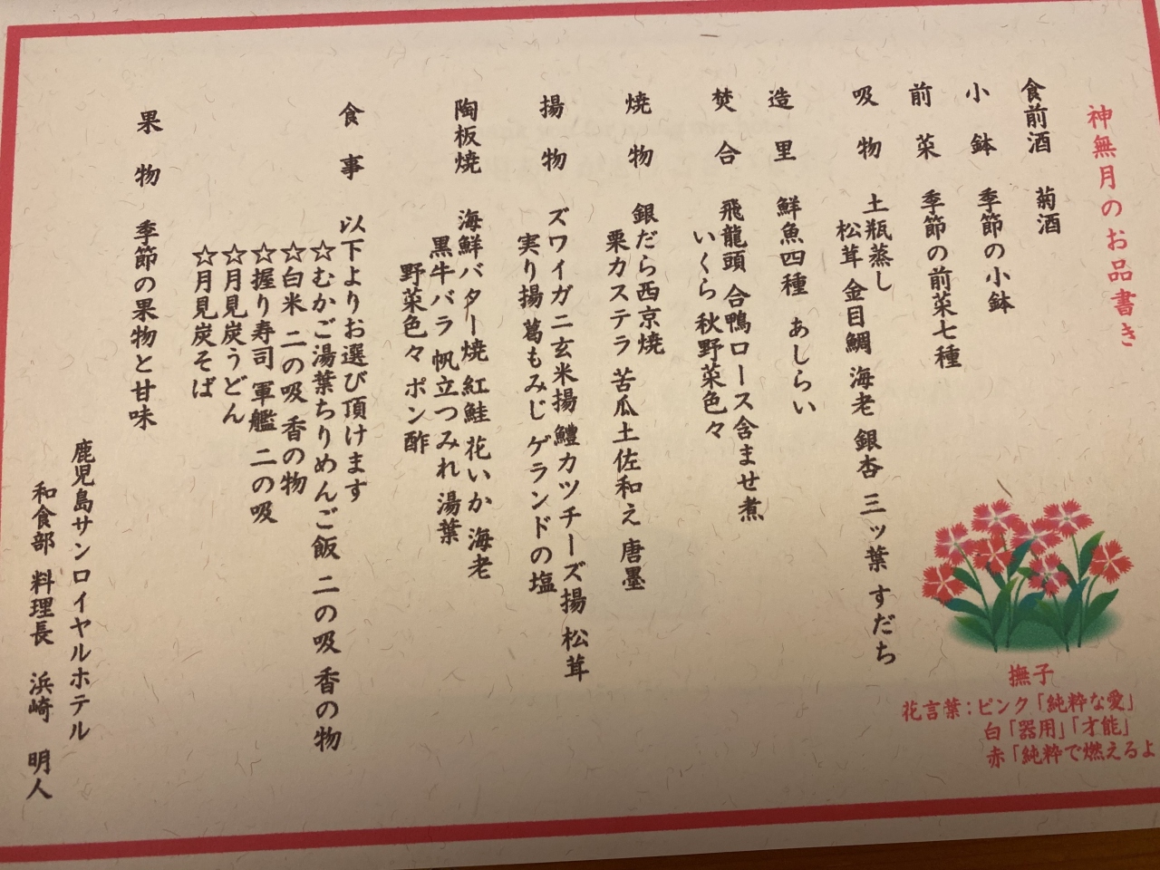 和食の夕食付きでしたが、鹿児島独特の甘い味付けではなくて、どれも美味しくいただきました。バーもオープンしていました。