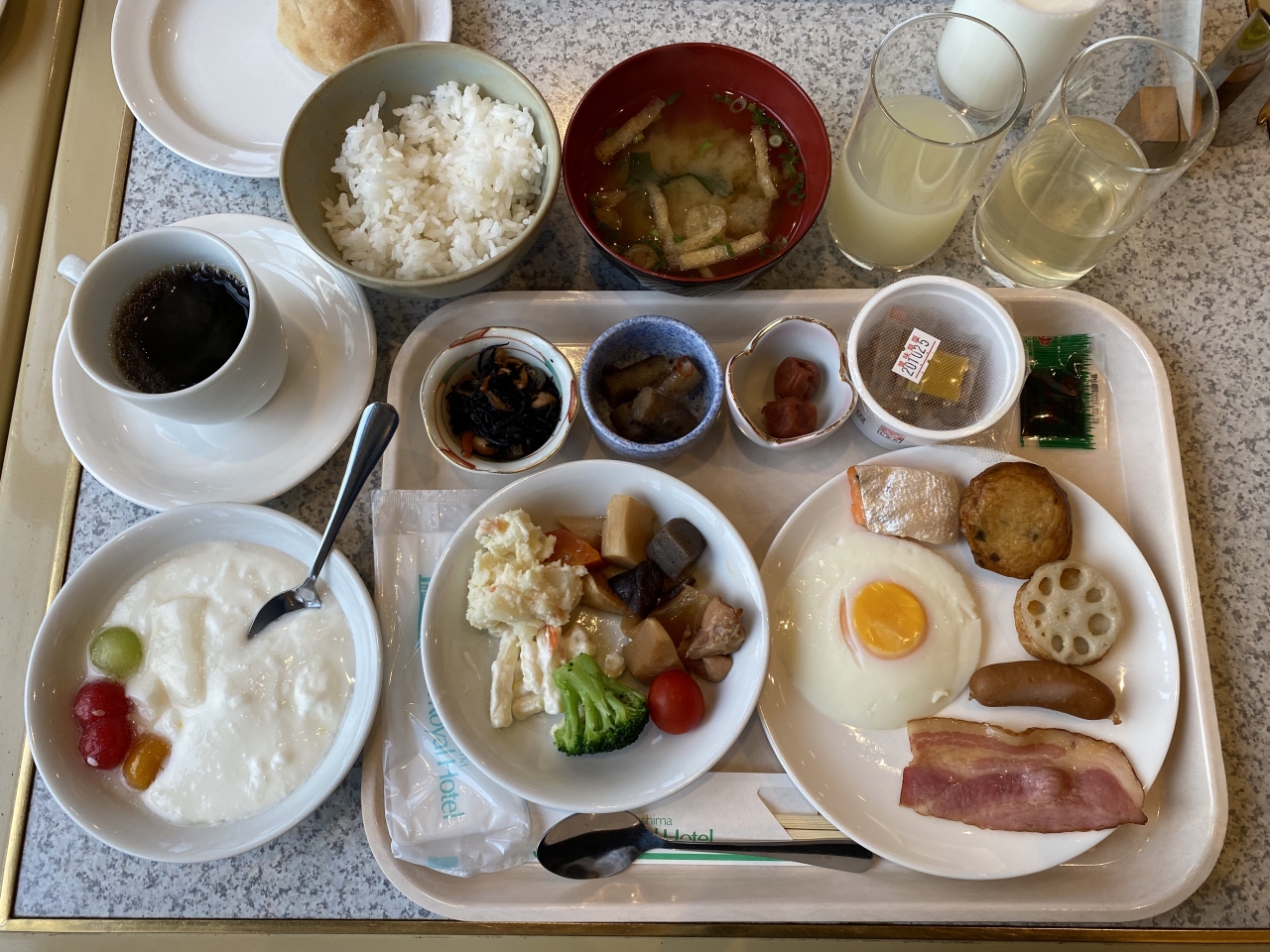 朝食ブッフェはオープン前に並び、一番乗りだったのでブッフェでもスムースに取れました。料理の種類もまずまずの品揃え。コロナ対策で席間もまあまあ広めにとってありました。