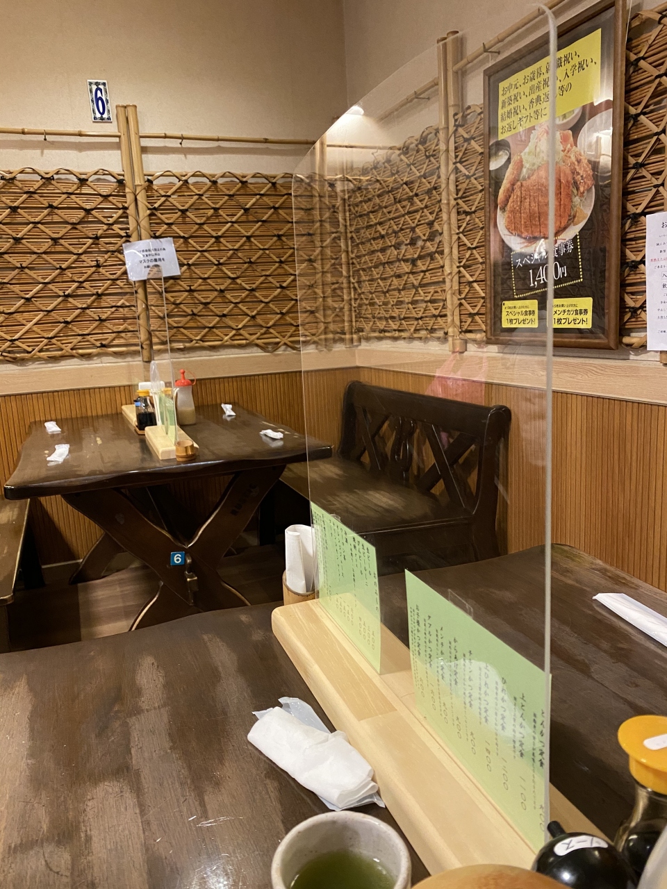 新型コロナ対策で、全てのテーブルに透明の仕切り版がつけてありました。国分でこれだけ徹底している店は初めてみました。