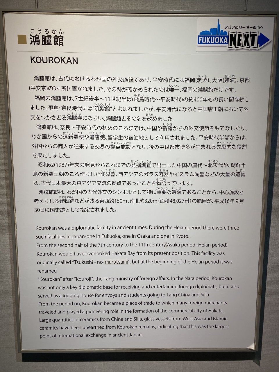 7世紀の古代に外交施設が、福岡、大阪、京都と3箇所もあったのに驚きです。そのうち見つかったのはここだけ。