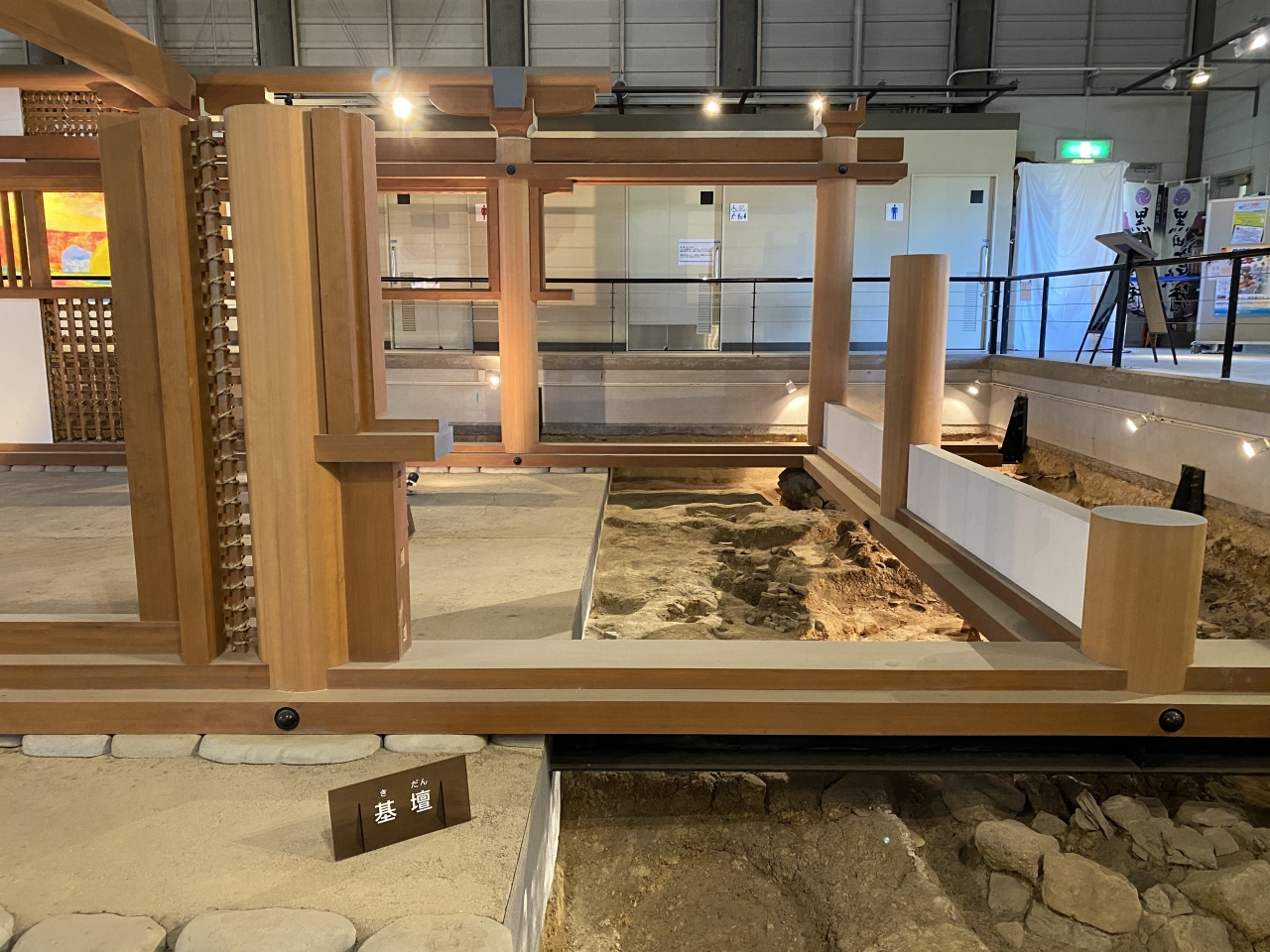 発掘の状態に想像の建物が乗っかってるので、わかりやすい展示法だなと関心しました。お金かかってそうですが、入場無料でいいのか ? と思ってしまいました。入口にお気持ちを入れる箱が設置されていましたが、見てから入れようと思って、忘れてしまいました。- 旅行時期