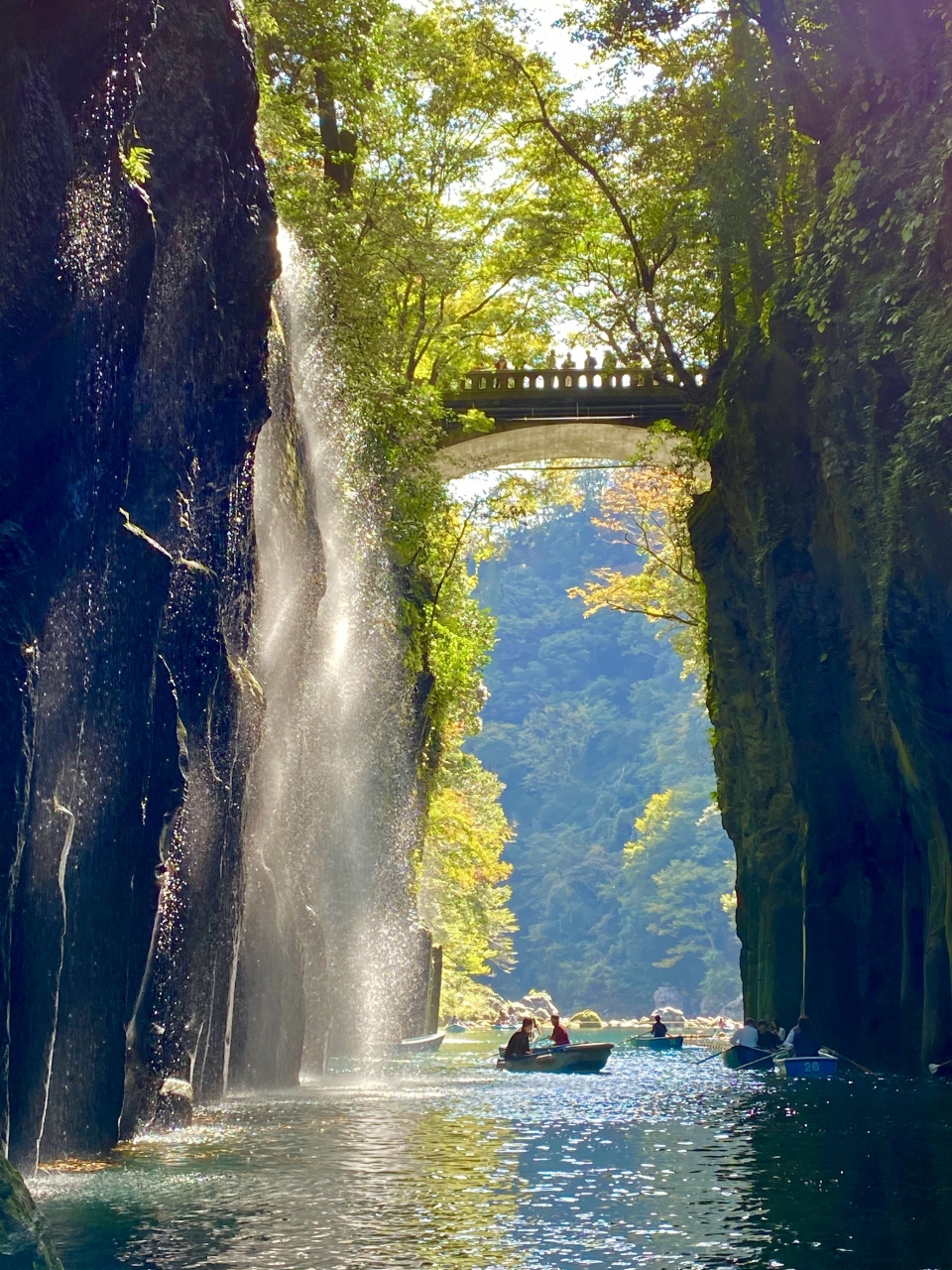 鍋ケ滝、くじゅう高原、高千穂峡を訪れるために、天気予報を見て5日前に大手旅行社に予約に行きましたが、初日の長湯温泉は旅館が取れましたが、高千穂峡は紅葉が始まった土曜日ということもあり、旅行者提携のホテル、旅館はどこもあいてませんでした
