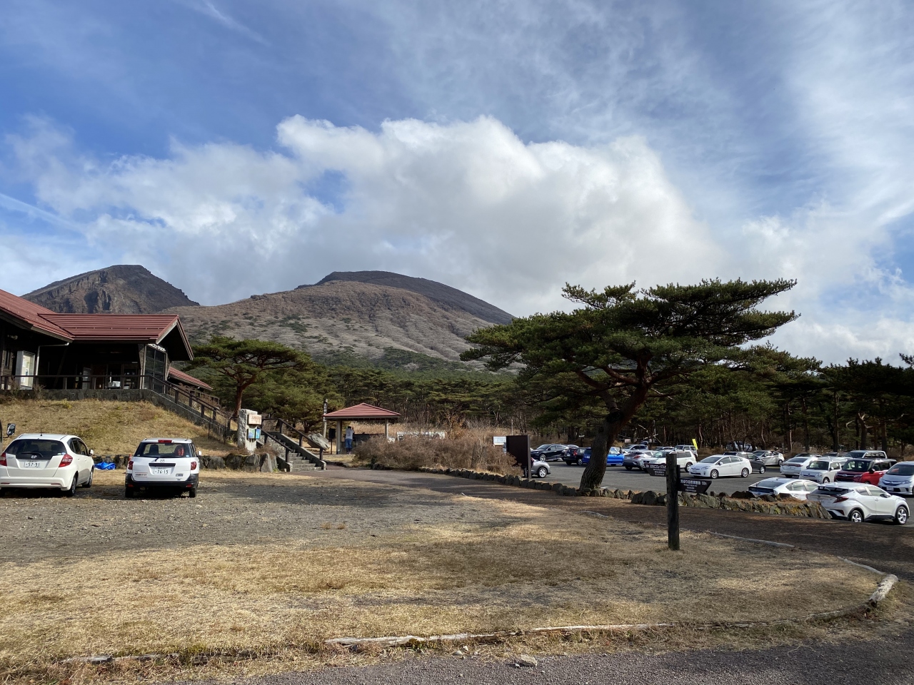 韓国岳に登る予定で、コチラの前の駐車場(500円)にとめました。平日ですが既に車は30台ほど来ていて、準備をして歩きに行く人たちもいました。
