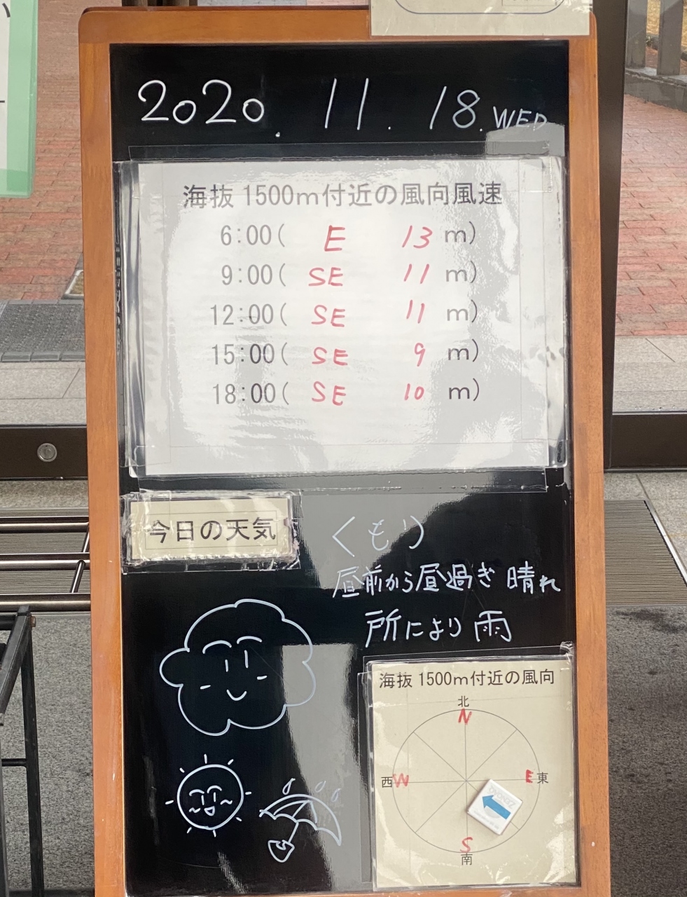 本来ならば登山前に情報を得ておく方が良いのでしょうが、気象予報の張り紙だけ見ておきました。