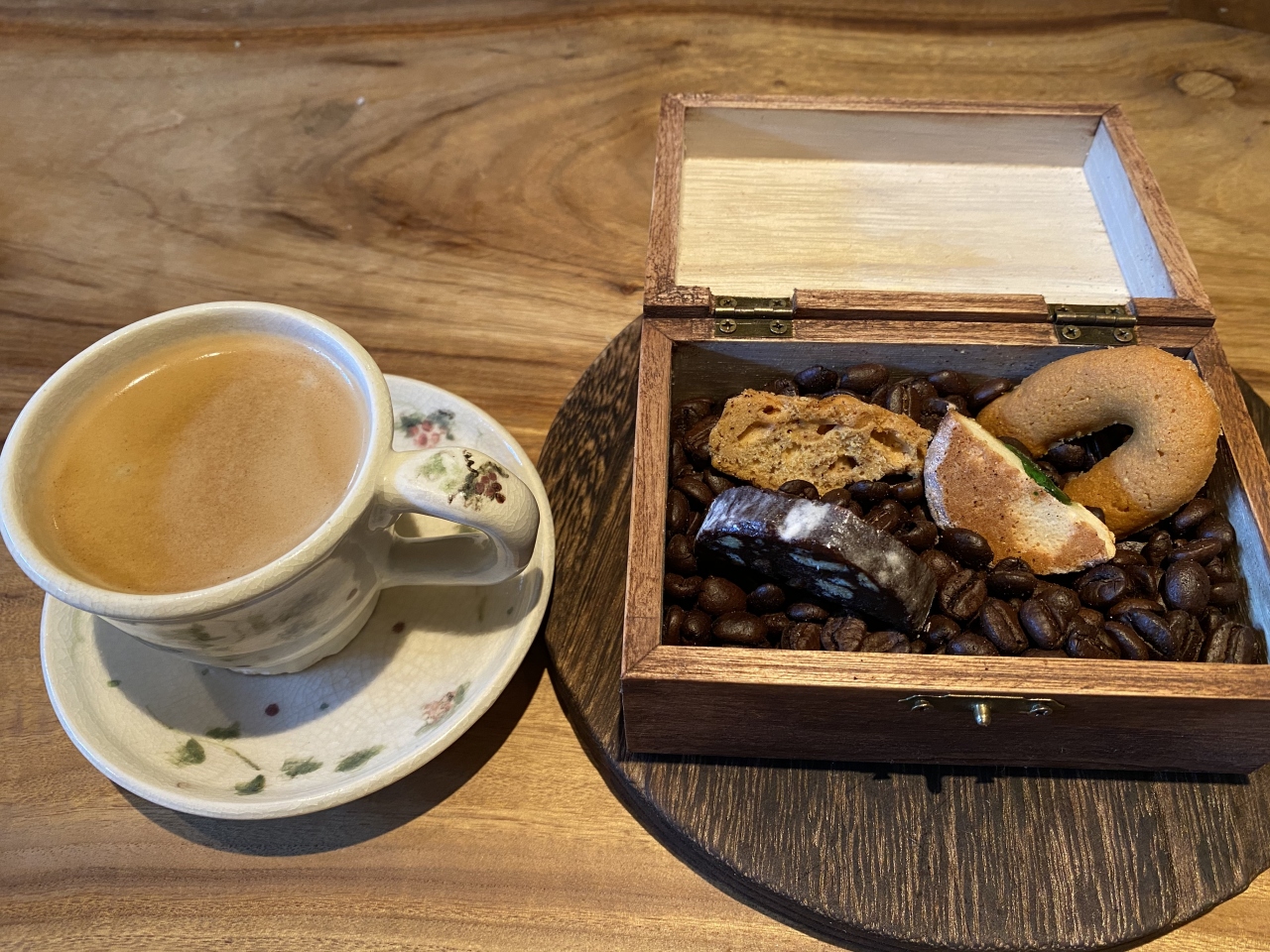 本日のお菓子はイタリア各地のビスケットを4種類。秘密の玉手箱に入ってくる演出も嬉しく、素朴な味わいですが濃厚なシチリアコーヒーとよくあって、最後まで満足のいくパスタコースでした。ビスケットは販売もされていたので、当然買って帰りました。