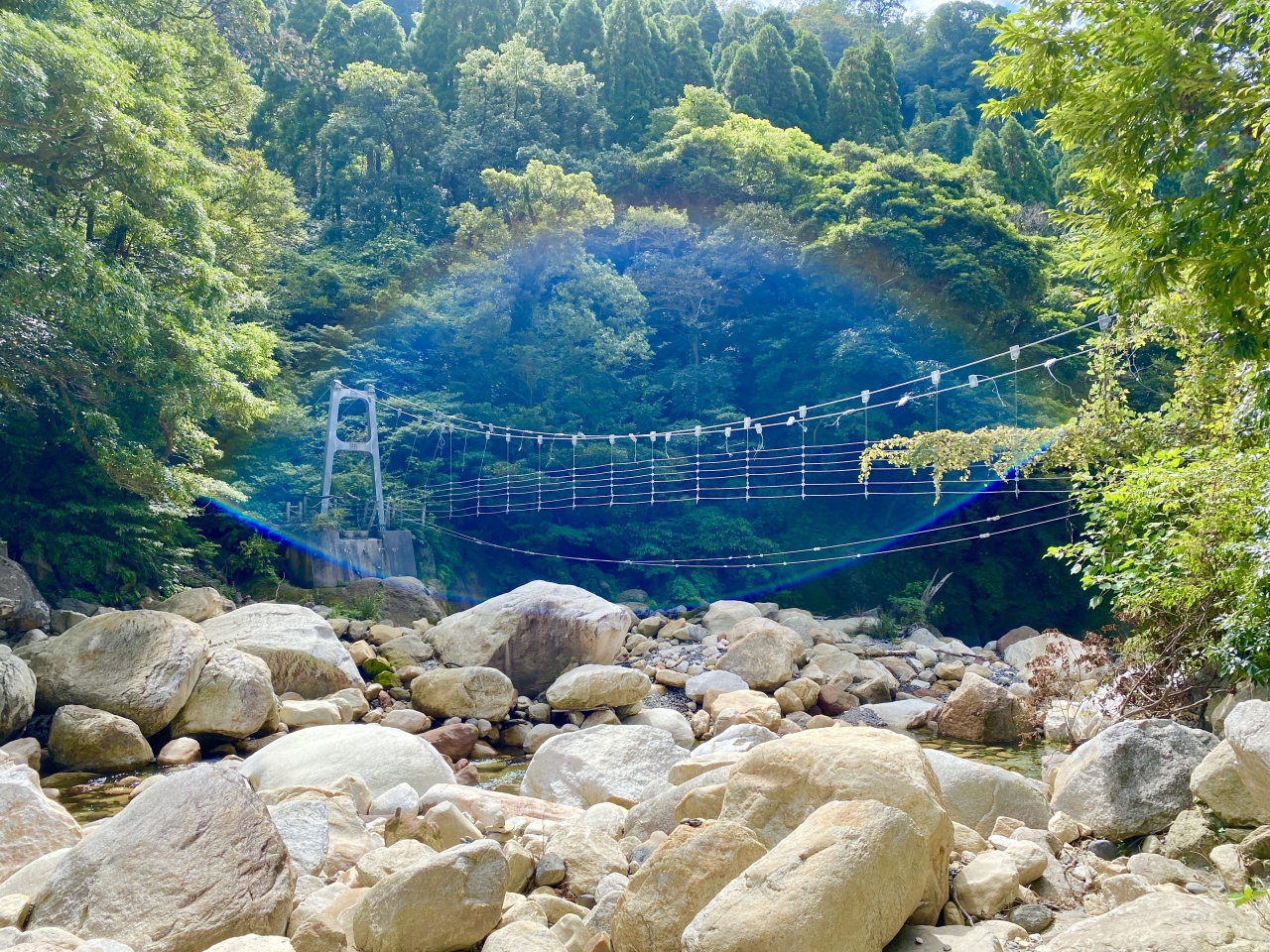 二つ目の潜水橋は、一部に先日の台風で流れた草木が積もって水が溜まっており、上を歩くとスニーカーが濡れてしまいました。水量が多い時は、渡れない時もあるようです。