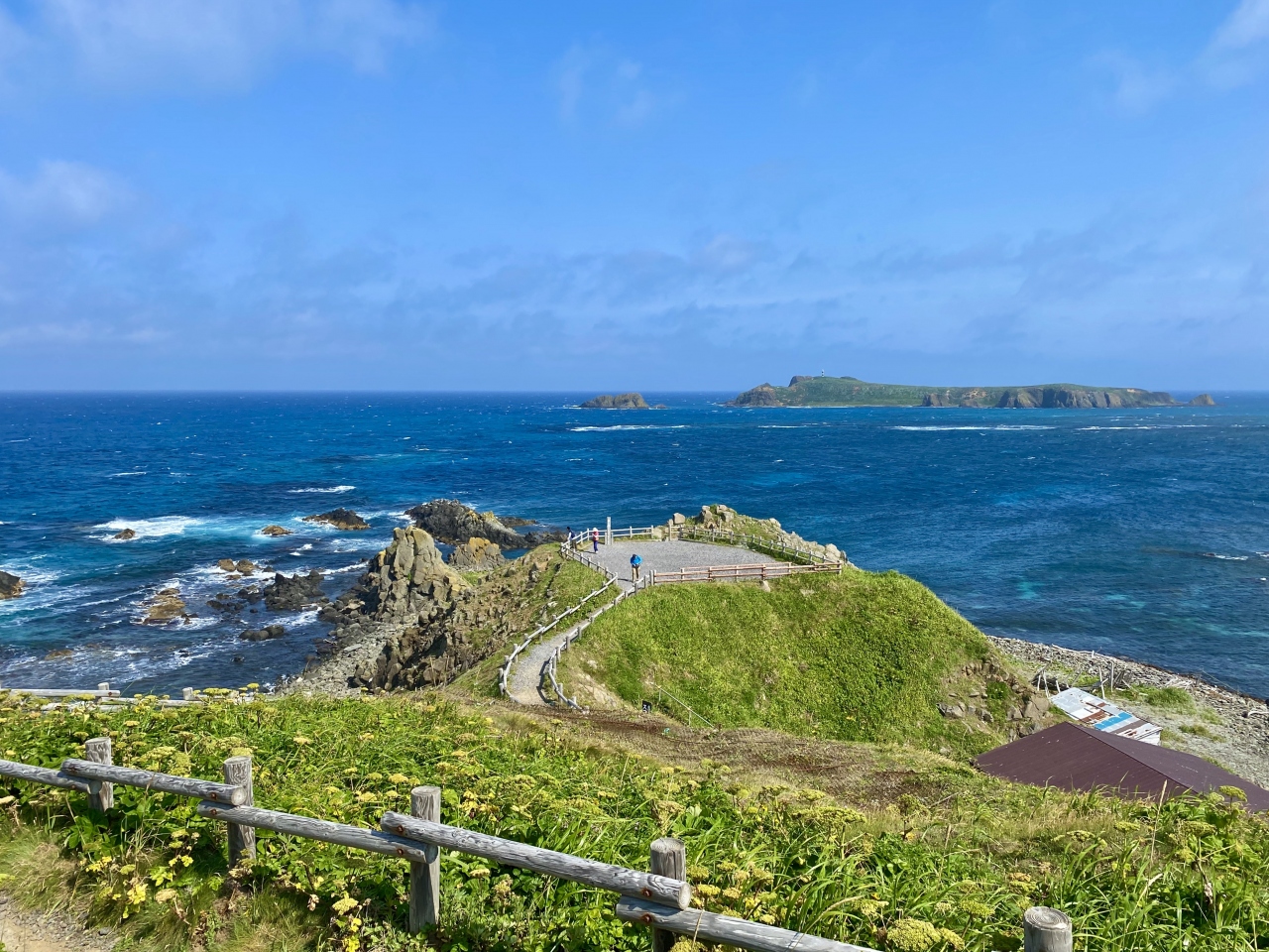 階段を降りて展望台に向かいますが、柱状節理の岩が海から突き上がり、先にはトド島と地平線が続く光景は、最果ての地を感じさせるもので素晴らしい。『スター・ウォーズ/フォースの覚醒』でルークがいたアイルランドの孤島のような雰囲気さえあります(行ったことないけど)。