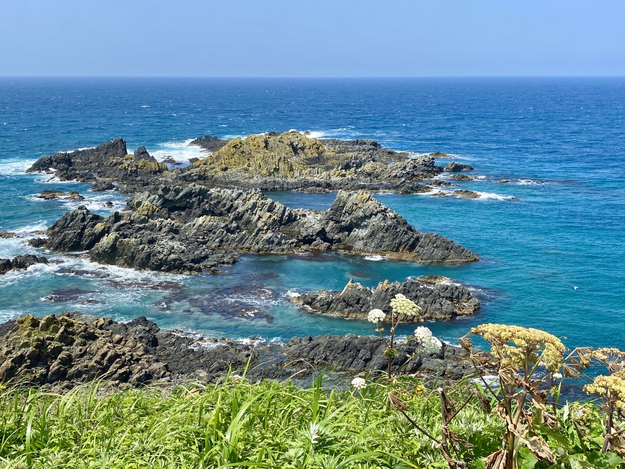 駐車場から階段を登って行く途中からは、よく写真で見かける透明度を誇る美しい入り江が見られ、テンションが上がりました。コバルトブルーの澄んだ海を見渡す、まさに名前通りの岬でした。