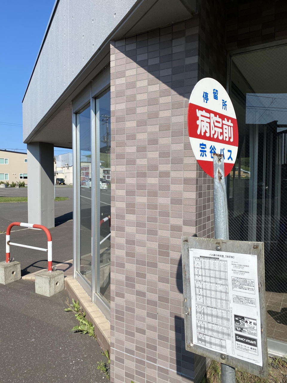 バスでのアクセスの場合は、船泊の街にある病院前バス停からは歩いて3分くらいです。