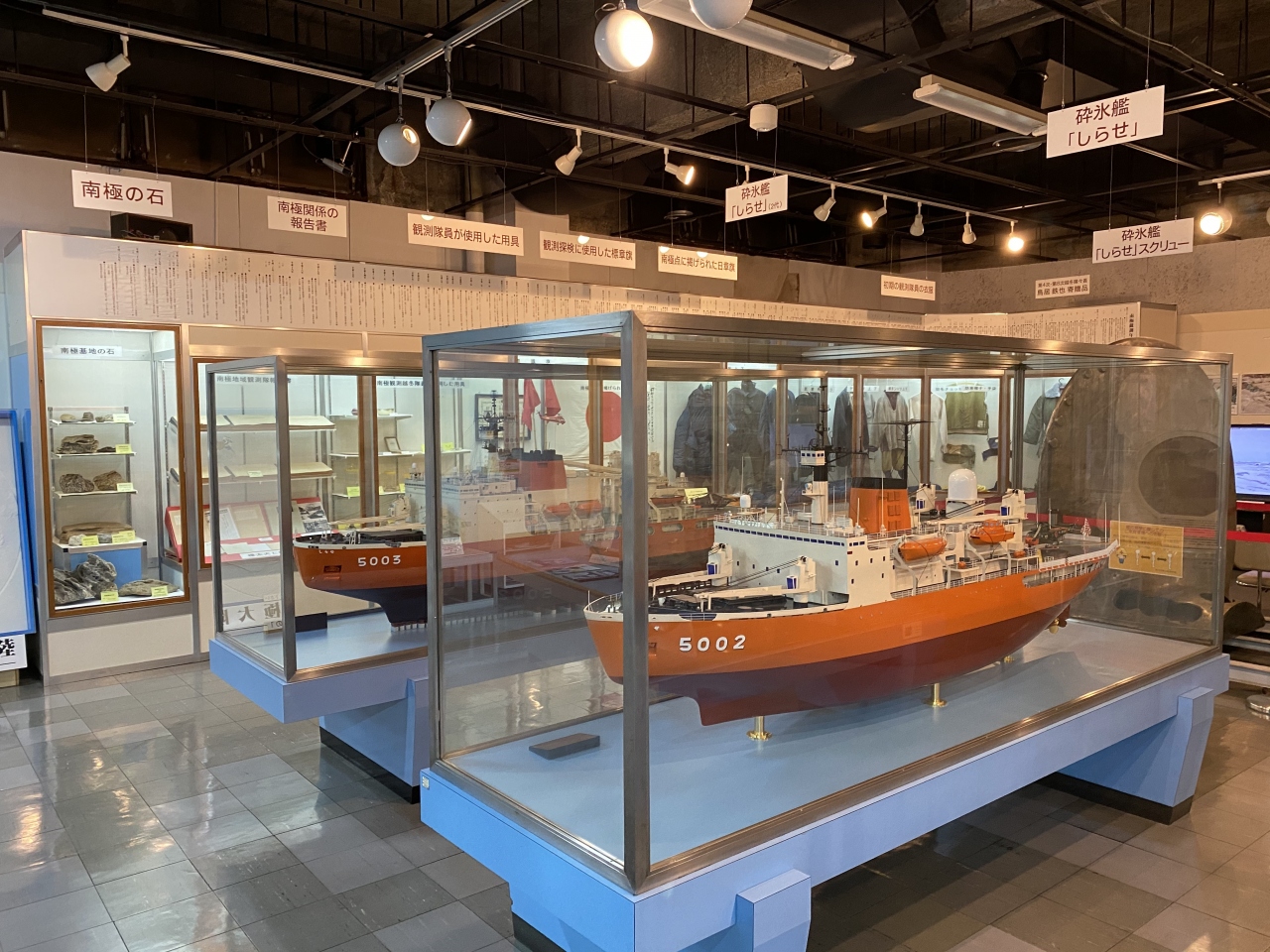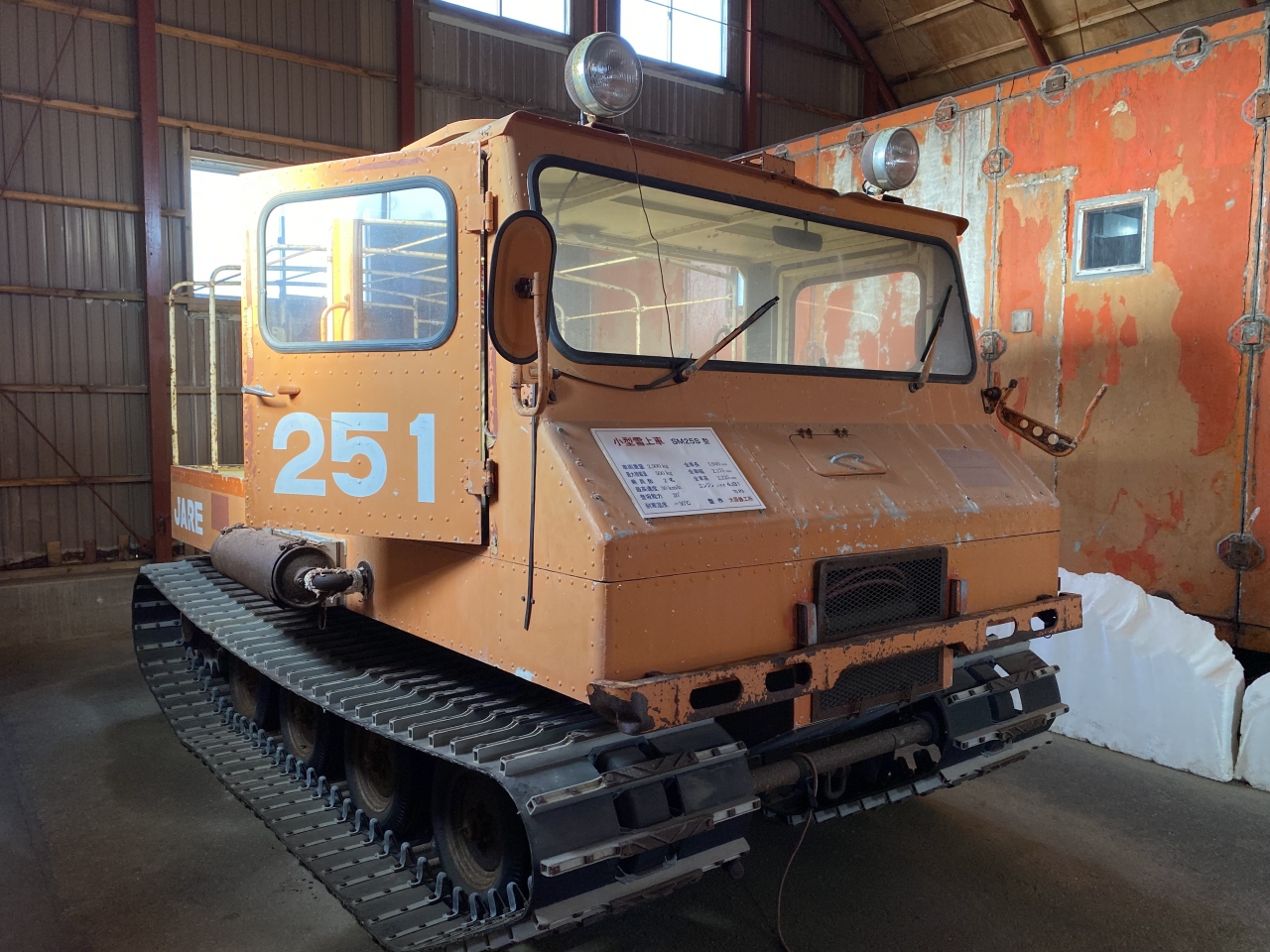 隣の資料館の奥にある南極越冬隊資料展示に先に向かいました。最初の雪上車や、初代のコンテナ1軒の実物大室内、個室、有名なタロ、ジロの感動秘話など見られて興味深かったです。