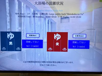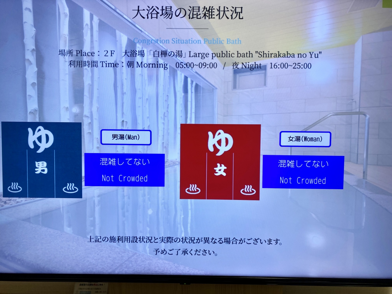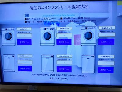 お風呂の混雑状況はTVのホテル情報チャンネルでわかります。これは今ではまあまあありますが、ランドリールームの洗濯機、乾燥機の使用状況までわかるのは素晴らしい。いちいち見に行かなくてすみみますからね。