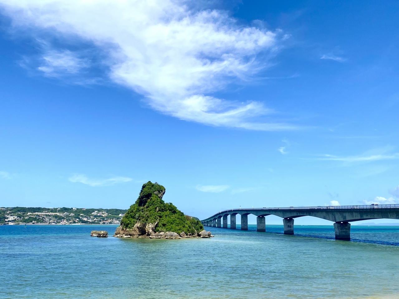 古宇利島に渡る古宇利島大橋の左手前に展望所があります。スピードを出していると駐車場入口に入れないので要注意。台数は沢山とめられませんが、写真撮れば出る車も多いです。