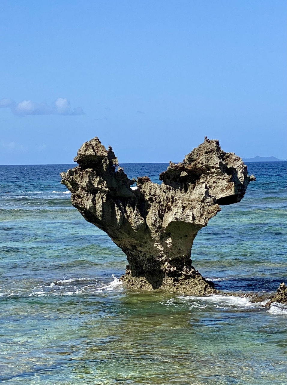 後の人気場所はハートロック。波の侵食でこのような形になったものは色々な場所で見られます。とりあえずついでなので寄ってみたけど、そんなに映えるもんでもないと思いました。まあ、わざわざ行くほどかな?砂浜から海に入ると珊瑚砂なので裸足になると痛いです。