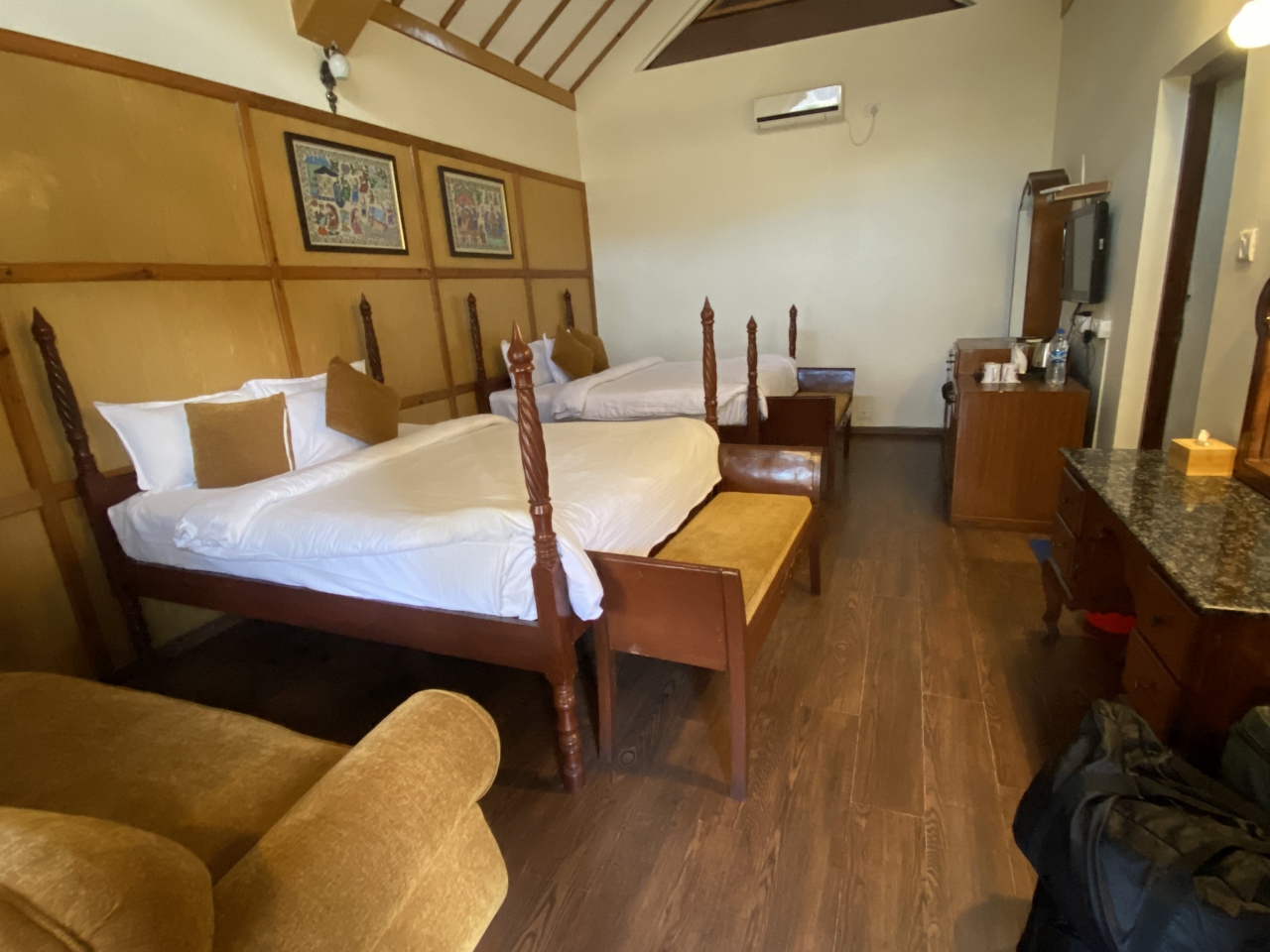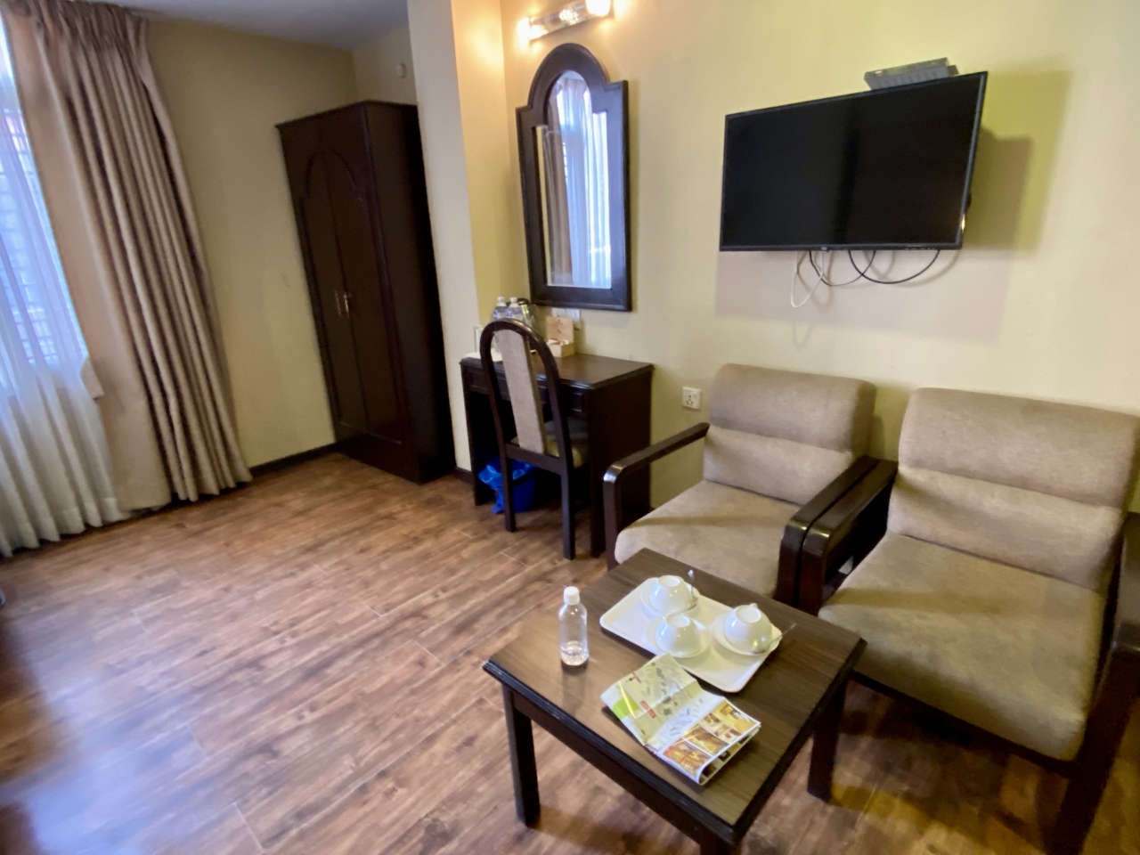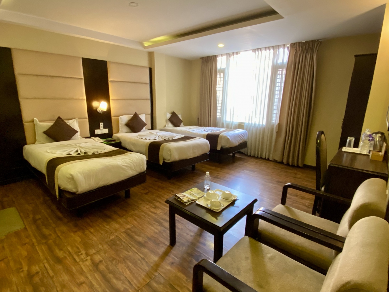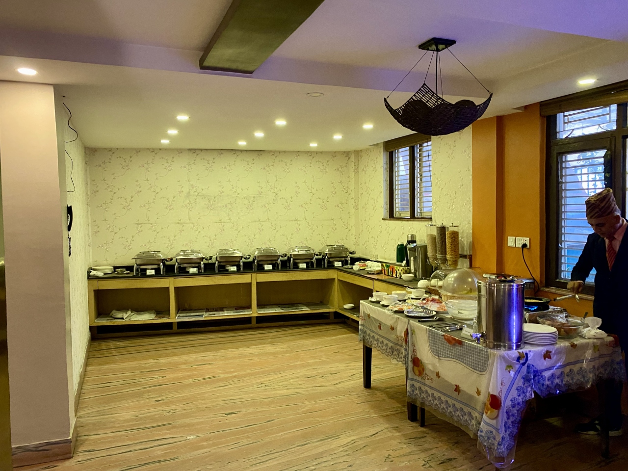 タメル地区内にあり夕食や買い物に便利でした。ダルバール広場にも歩いて30分くらいです。部屋はトリプルベッドのタイプだったので広かったですが、ベッドは小さい。朝食ブッフェの種類は少ないですが、料金からすれば十分満足でした。各階の廊下に灰皿があるので喫煙者には便利です。全体として古い感じはしましたが、ロケーションからすればリーズナブルだと思いました。ただしエレベーターがないので部屋は1階にしてもらった方が良いです。スタッフは皆さん皆さん穏やかな笑顔で対応してくれるので気持ちが良いです。1泊朝食付きで1部屋5411円はリーズナブルだと思いました。