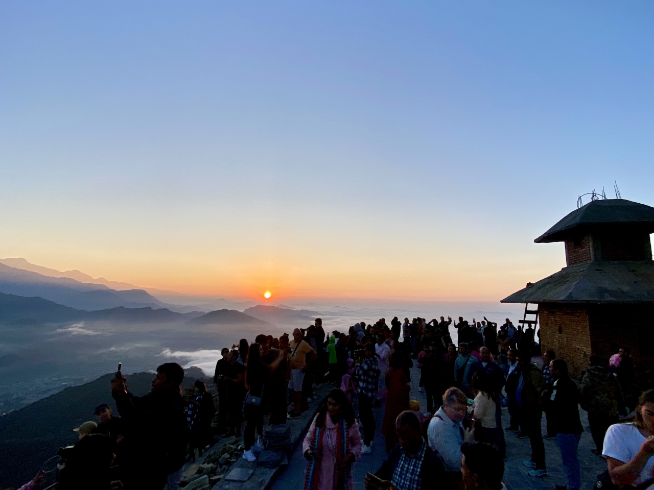 以前はタクシーか徒歩で行くしかなかったですが、街中にケーブルカー乗場ができたので、早朝のアクセスも簡単になりました。上で下車したらエレベーターを降りてから10分ほど歩いて登ります。