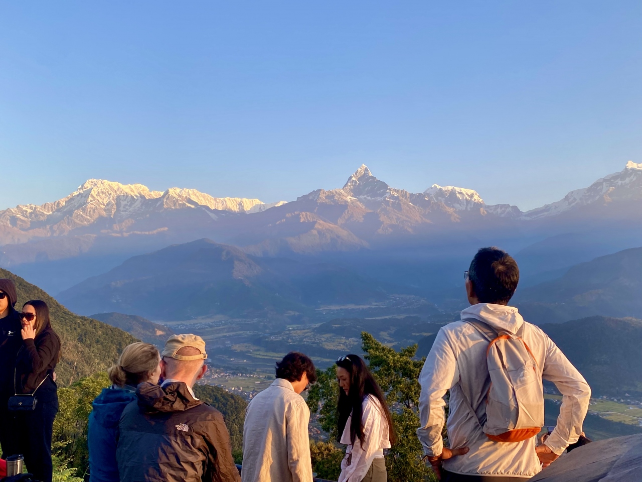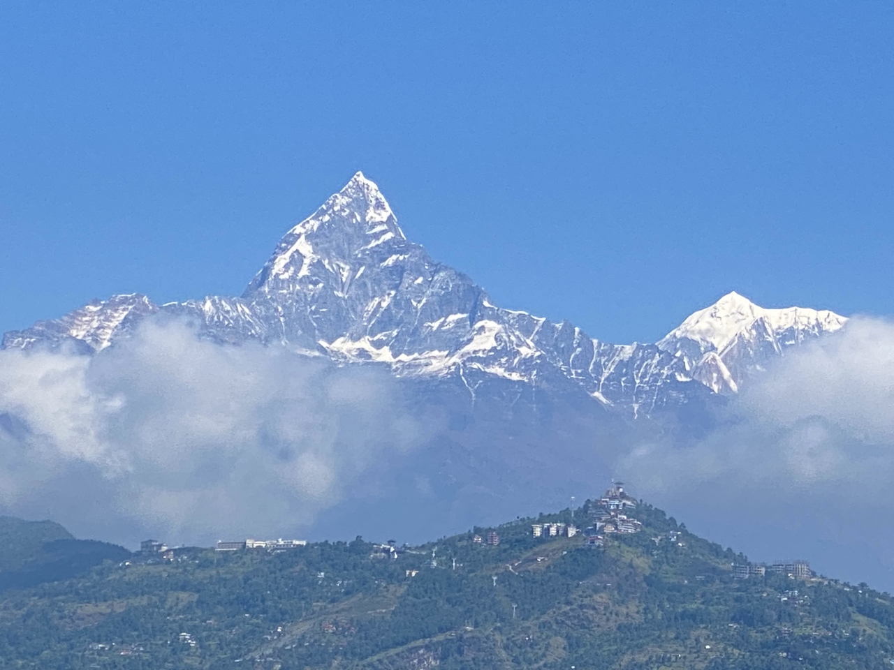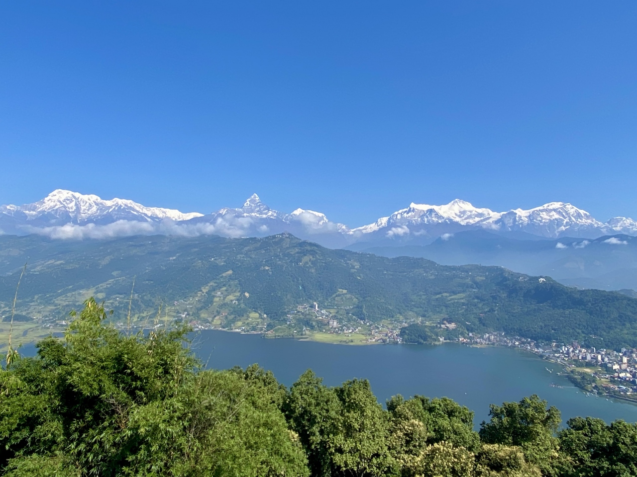 1113mの高台にあるので、ここからはフェワ湖をはさみ左からダウラギリ、アンナプルナ、マチャプチャレ、マナスルなど7000m級、8000m級のヒマラヤ山脈が望めます。タクシーなどでも行ける人気スポットです。9時過ぎると雲が広がりやすいので早めに行くことをお勧めします。