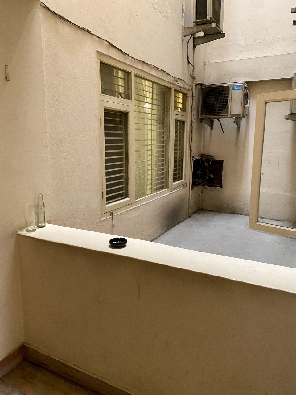 喫煙所はエントランスをでた外の通路にありました。- 旅行時期