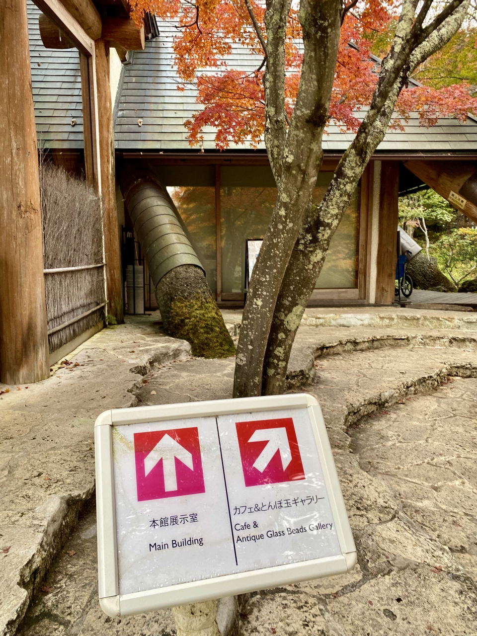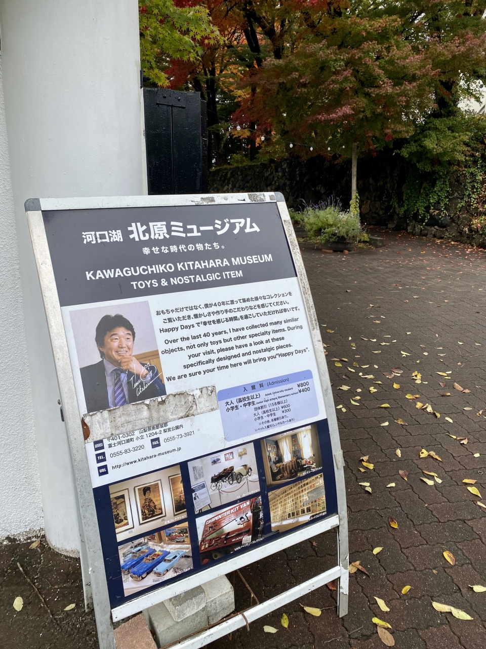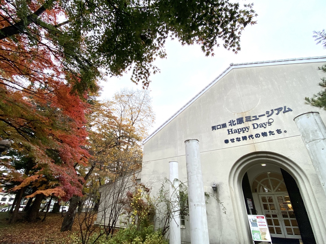 ロープウェイ乗場近くのホテルから湖畔の紅葉を眺めながら、河口湖大橋の袂にある大池公園まで歩き、ミュージアムに立ち寄りました。北原さんのコレクションをTV番組で見て、機会があればどこかのミュージアムで見たいと思っていました。建物周囲の紅葉も綺麗でした。