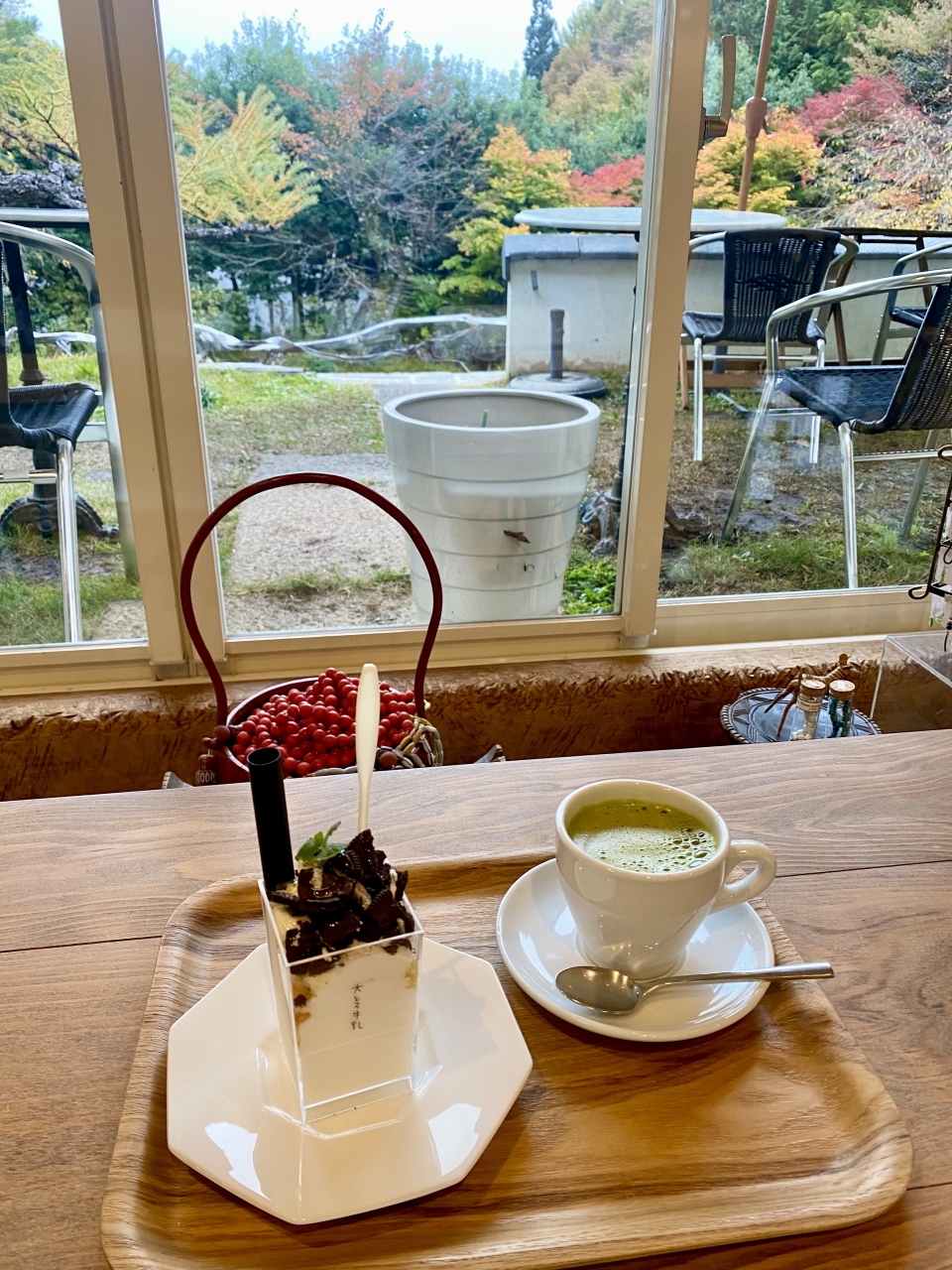 カフェから庭に出ると全体が一望できるので、飲みながらゆっくりのするのをお勧めします。店内のショップにも素敵な商品が色々とありました。- 旅行時期