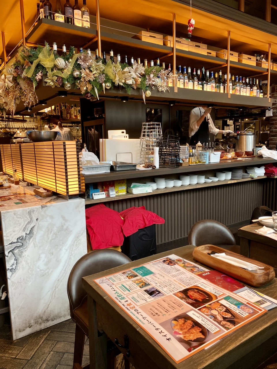 バスタ新宿に着いて近くで探していたところ、生牡蠣が色んな種類食べられるので決めました。店内はお洒落な作りになっており、テーブル下に棚があってメニューなど入れられて合理的でした。スタッフはテキパキとしていて気持ち良かったです。
