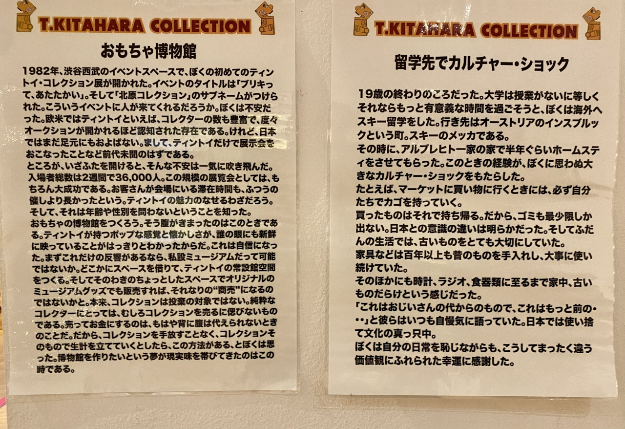 初っ端からスターウォーズコーナーがあってテンション上がります。コレクションを始めたきっかけは、留学先でのカルチャーショックが出発点だという解説が最初にあります。ビデオでは北原さんのコメントが見られます。