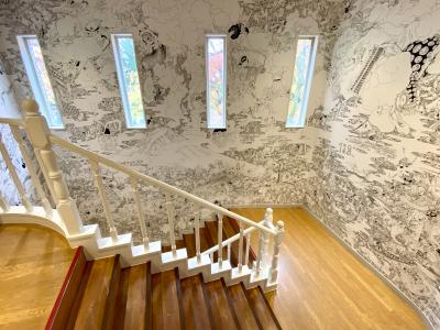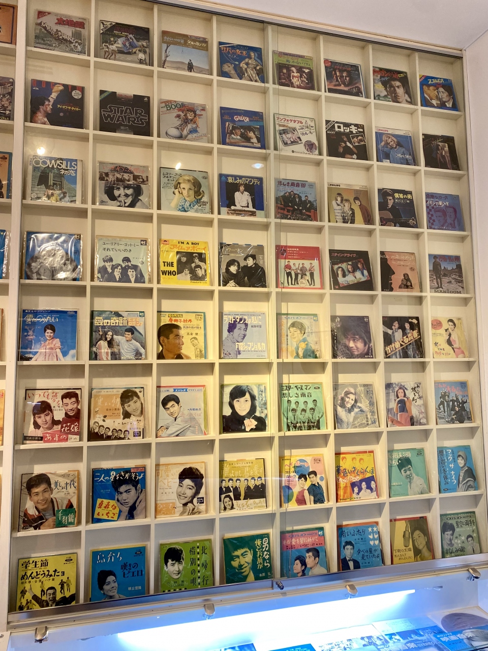 懐かしいレコードは和洋とも沢山展示されています。2階の上がる階段の壁面は、高橋伸雅氏が下絵無しマジックで1年半かけて描いた力作。モンチッチを探します。展示コーナーに進むと懐かしいおもちゃのオンパレード(死語です)。