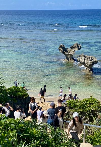 波の侵食でこのような形になったものは色々な場所で見られます。とりあえずついでなので寄ってみたけど、そんなに映えるもんでもないと思いました。まあ、わざわざ行くほどかな?砂浜から海に入ると珊瑚砂なので裸足になると痛いです。
