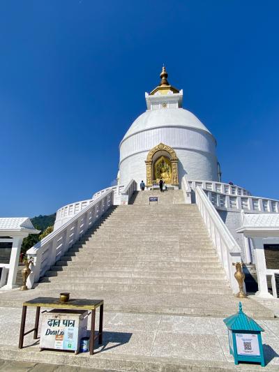早朝サランコットで日の出鑑賞をして、ホテルで朝食を取ったら、フェワ湖のボートに乗りました。対岸に渡ると遊歩道があり、約45分急坂を登ると日本山妙法寺。かなり息切れするような急登です。