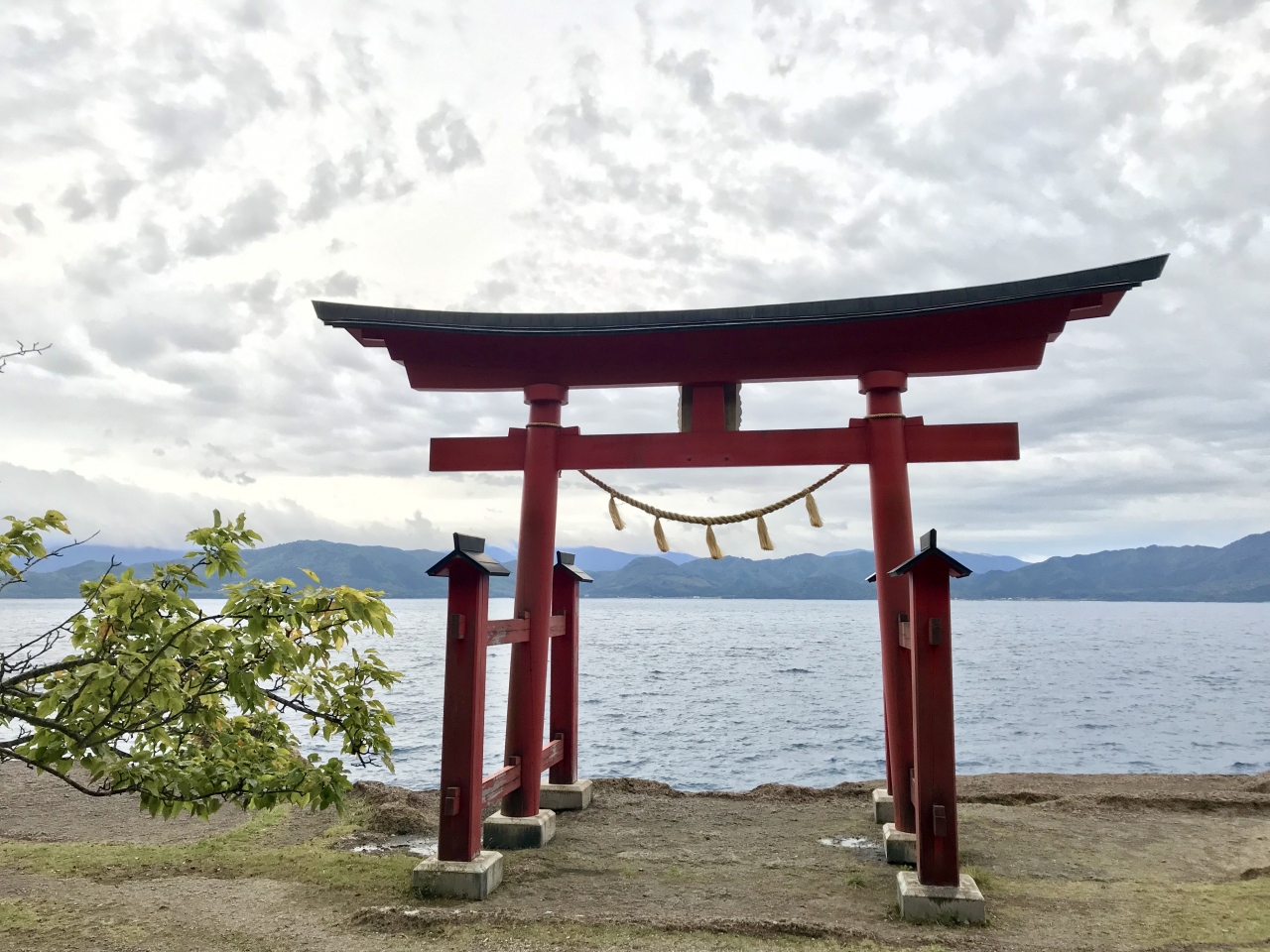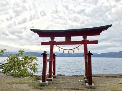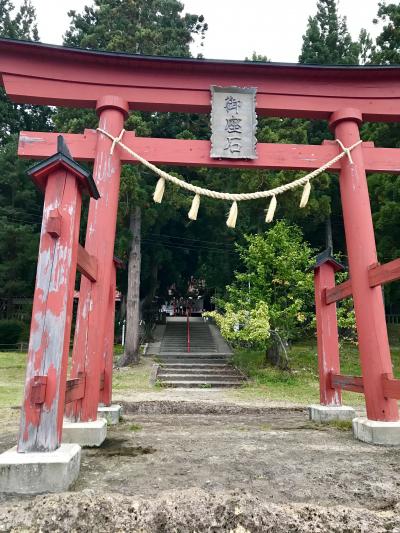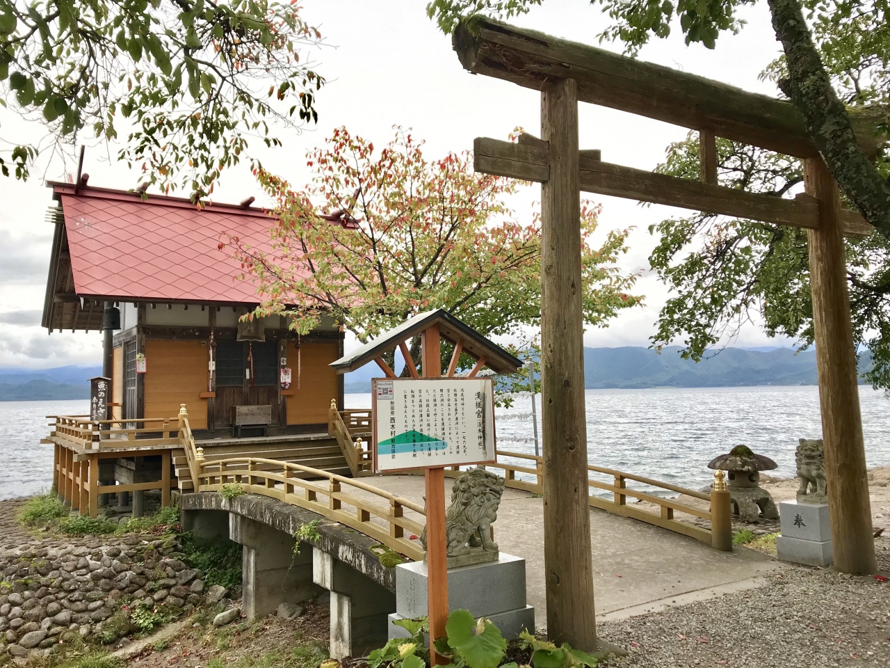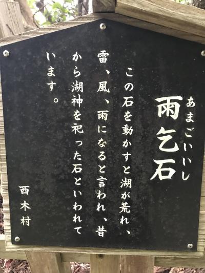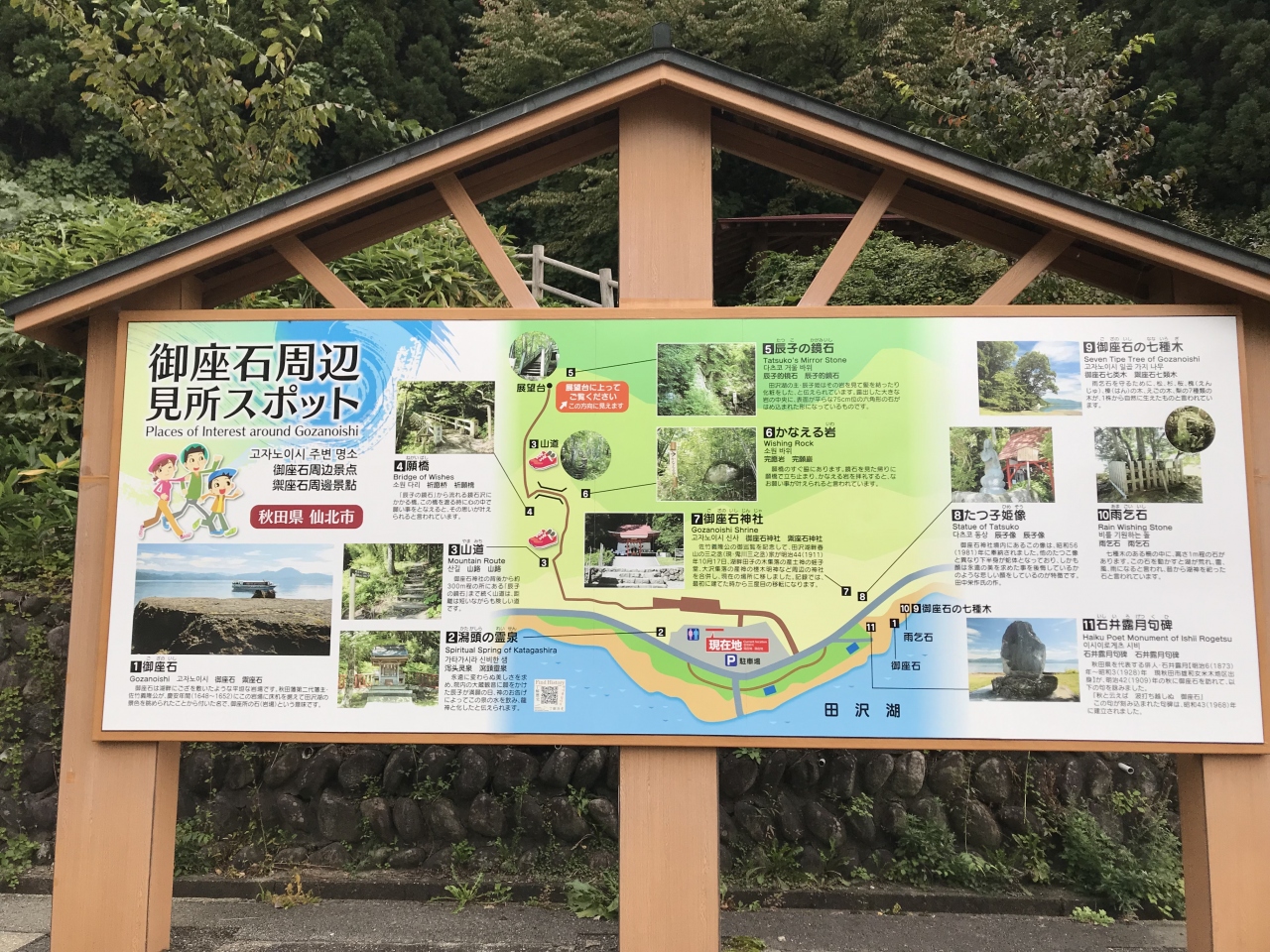 鳥居をくぐって海側に出て左側に、御座石という大きな石があり、秋田藩主がここに座って田沢湖を眺めたそうです