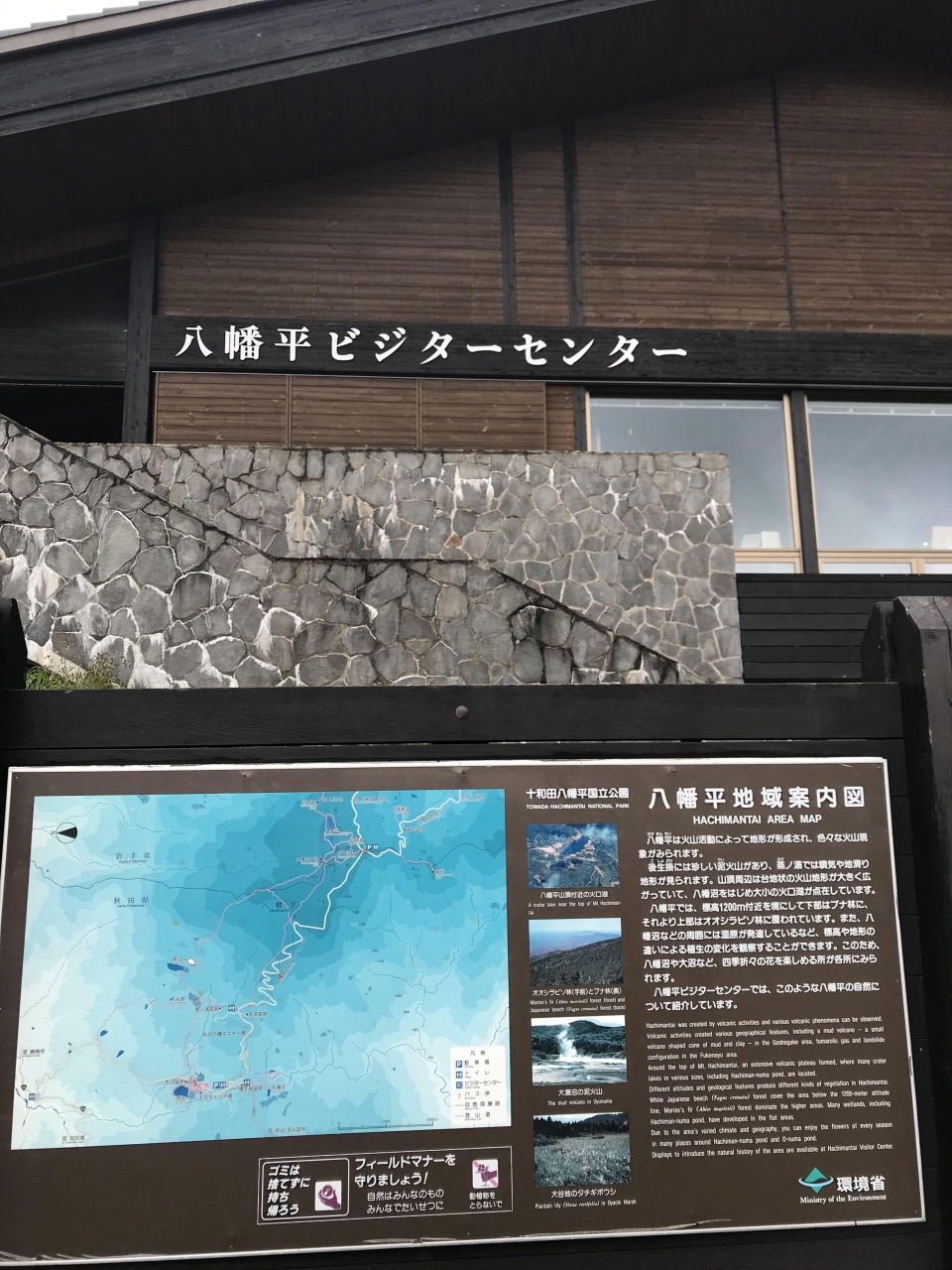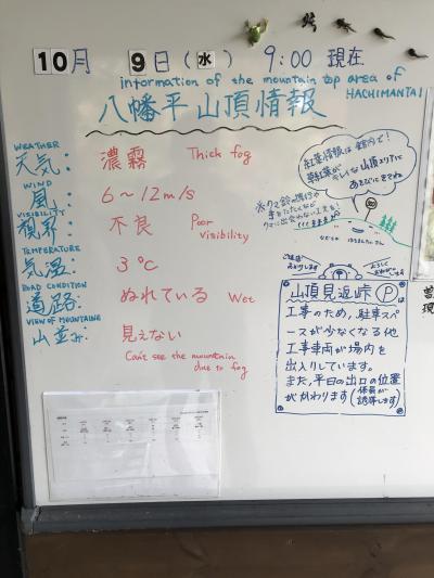 八幡平でトレッキングをする予定で立ち寄りましたが、生憎の濃いガスと強風のために断念しまた