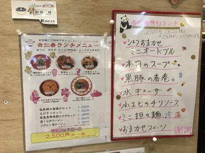 ランチタイムはセットメニュー(1,000円)と特別ランチのコースメニュー(2,500円・2名より)があり、私はセットの麻婆豆腐、家内は酢豚にしました