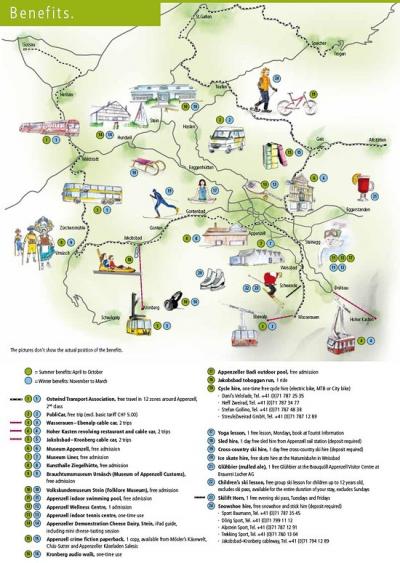 アッペンツェルのホテルに3泊以上するともらえる「アッペンツェルカード」があれば、滞在中何度でも列車の2等に乗り放題ですし、ロープウェイ、バスも無料です