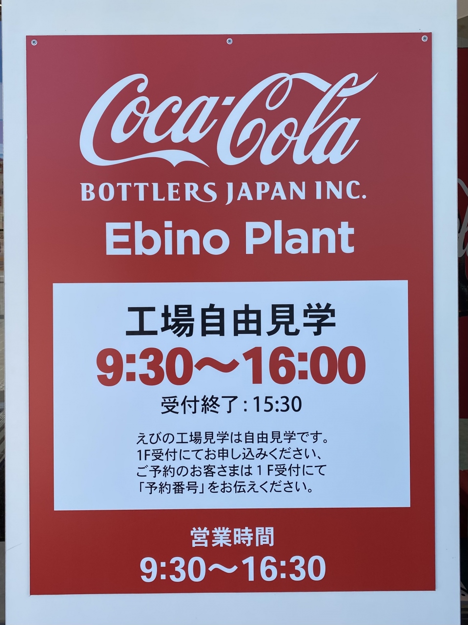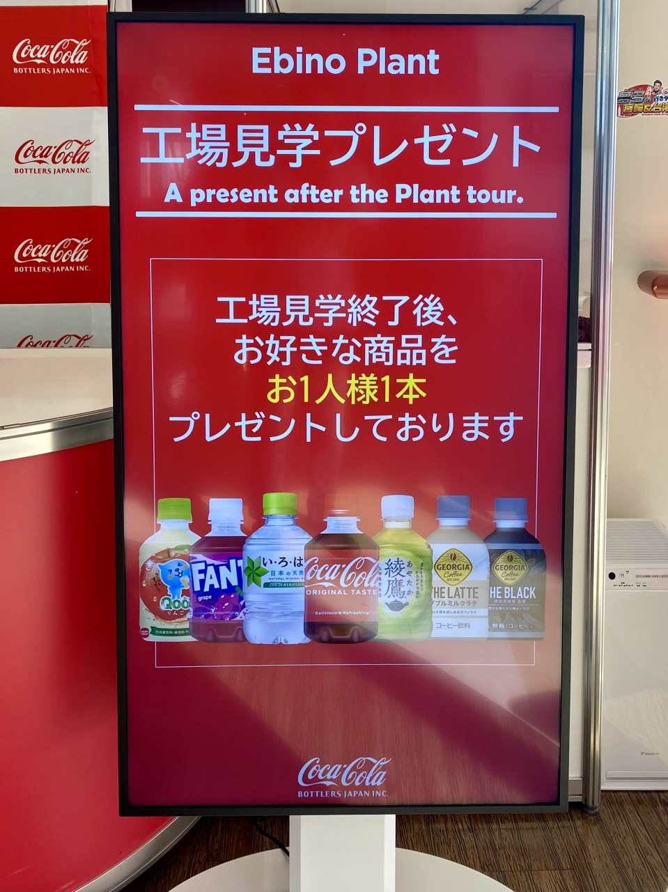 入口入って受付で用紙に記入すれば予約無しでも2階に上がって工場見学ができました。終了後ペットボトルハーフサイズがいただけました。工場見学自体は2階の窓ガラスを通して工程を眺めるだけなので、それほど見所がある訳ではありませんが、それぞれの場所で解説板はあります。