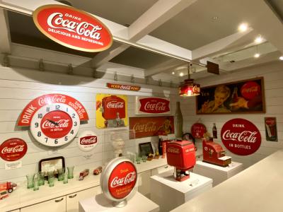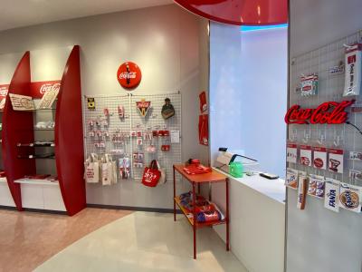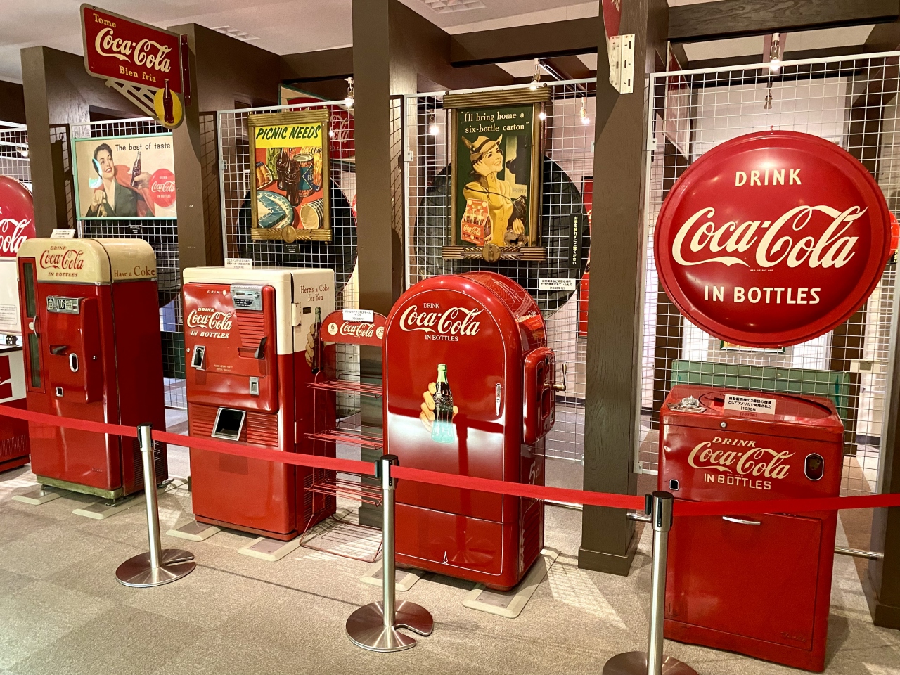 1階に戻りコーラ館には記念写真コーナーが設けられており、奥に進むと歴史的な資料や懐かしいノベルティなどが沢山ありました。入口横のショップにも魅力的なものがありました。