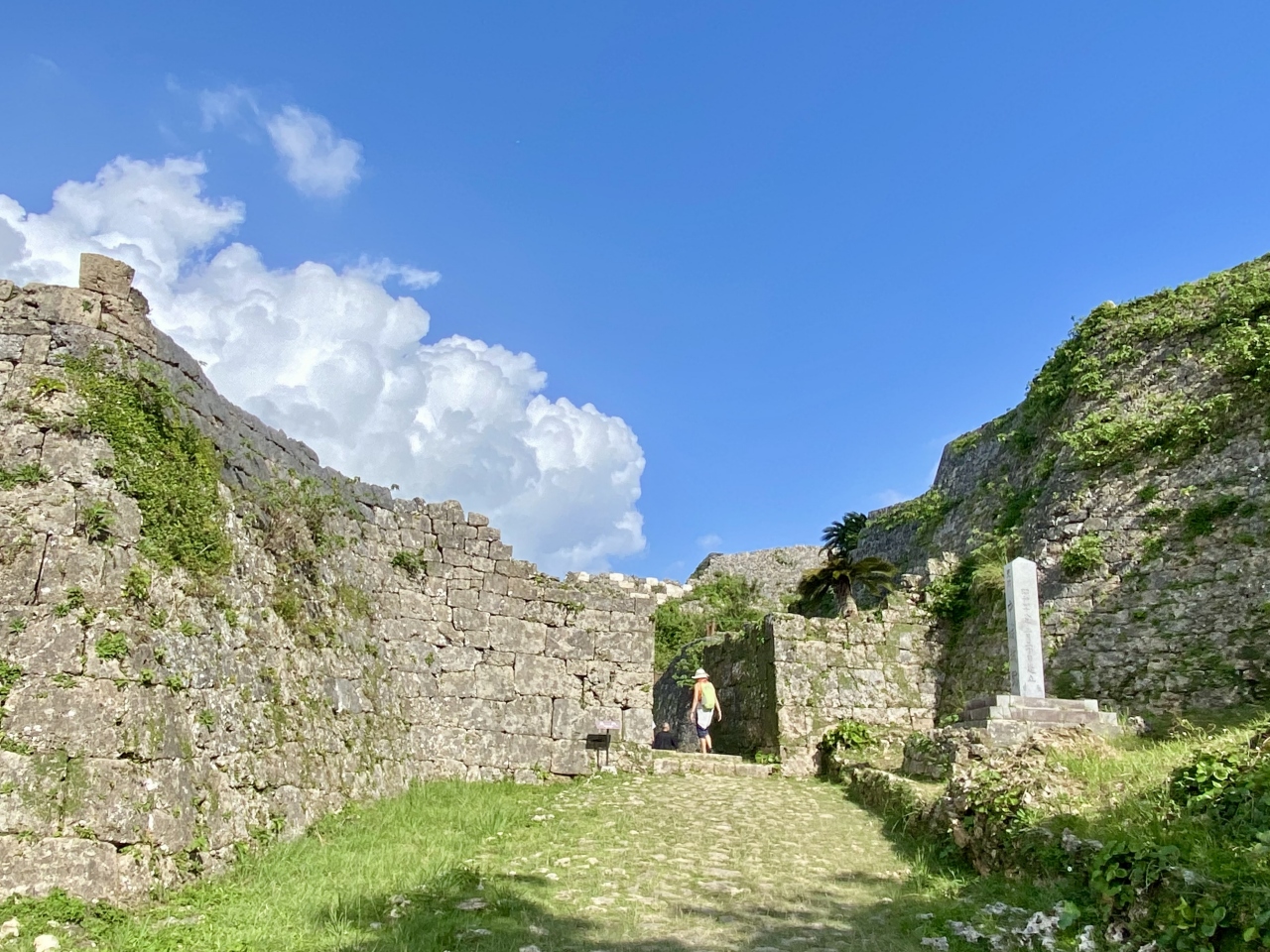 世界遺産に登録されている沖縄の城跡の中でも下から見上げる感じが美しく、ヨーロッパの古城的な趣きがありました。チケットを見せる所にはゴルフカートがあり少し上まで乗せてもらえますが、歩いてもしれてます。