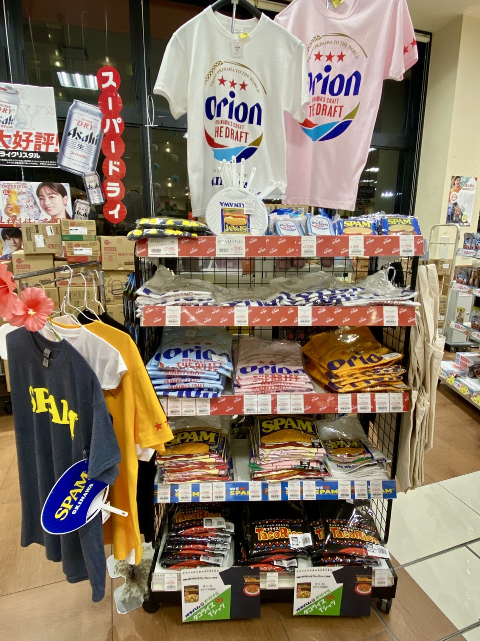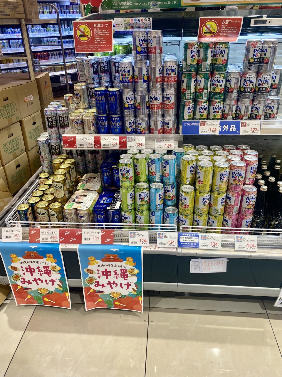 海側の「Hotel Sansui NAHA 琉球温泉 波之上の湯」に宿泊したので、一番近いスーパーに行ってみました。オリオンビールの種類も各種揃っていました。沖縄土産のコーナーが豊富でした。オリオンTシャツは2,500円と特に安くはなかったです。ひめゆりの塔のお土産屋では2,000円で売ってました。