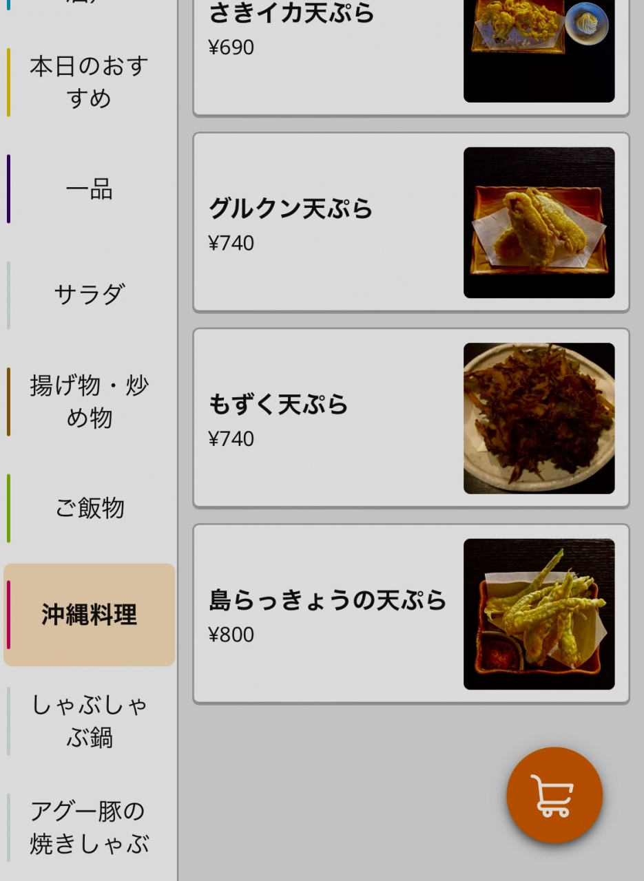 海ぶどう、島ラッキョウ天ぷら、もずく天ぷらなどどれも美味しかったです。- 旅行時期