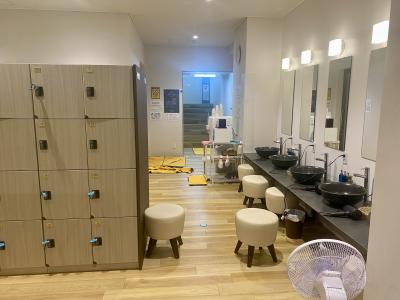1階温泉は脱衣所、洗い場、浴槽もまあまあ広いので、それほど窮屈感はない。脱衣所から階段で2階に上がるとサウナ、冷水槽、露天風呂(外ではなく空気が繋がってるだけ?)があります。ドアから出るとプール、ジャグジーがありますが、プールは水が冷たく長時間は無理でした(2024.10.13)。