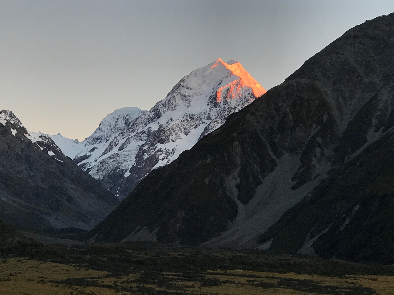 朝は早起きして、マウントクック他が赤く染まる日の出を、ぜひ見て欲しいと思います