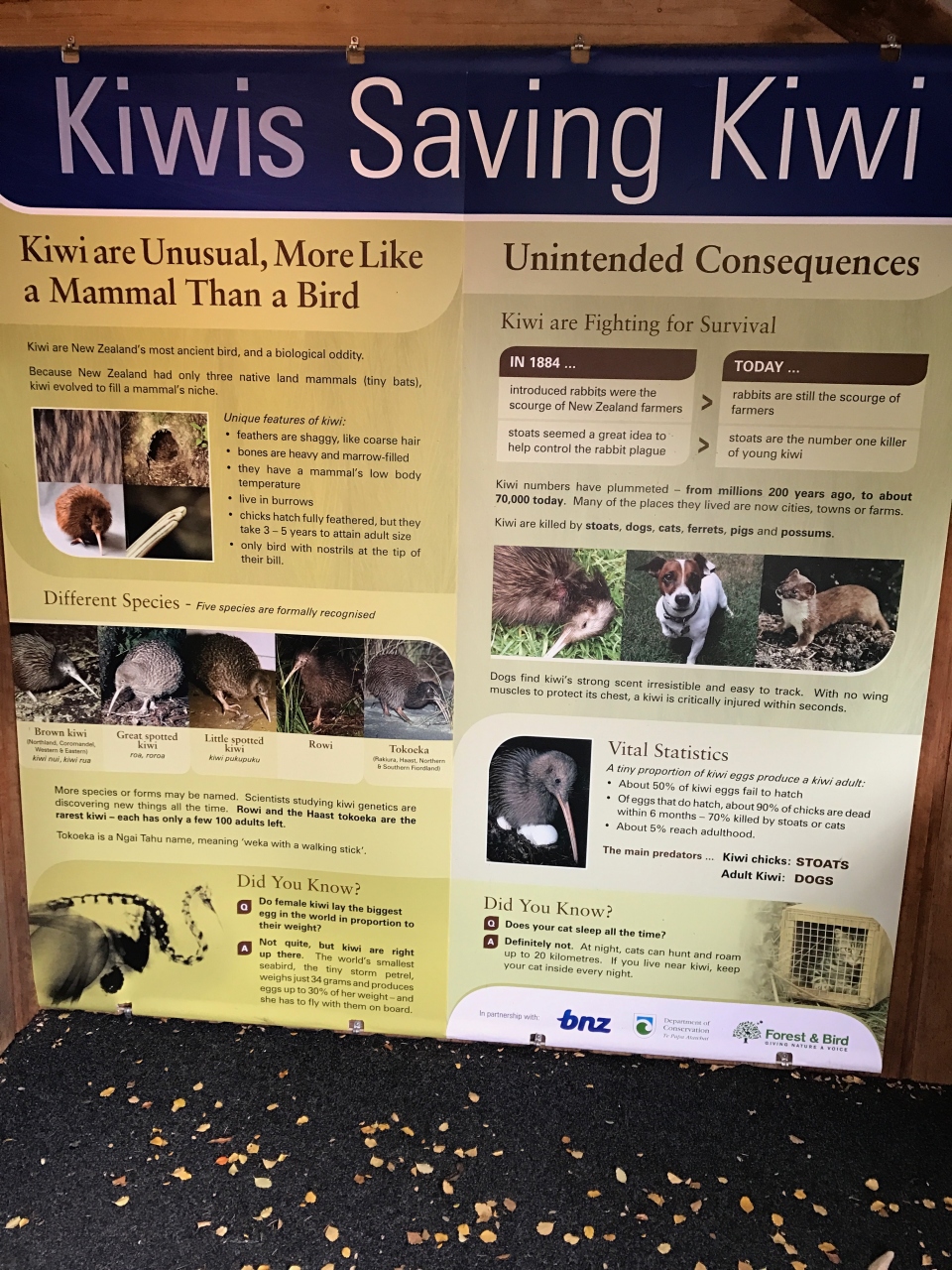 果物と、飛べない鳥!なので、特に飛べない鳥のキウィは見てみたかったのですが、キウィ館内は真っ暗でよくわかりませんでした
