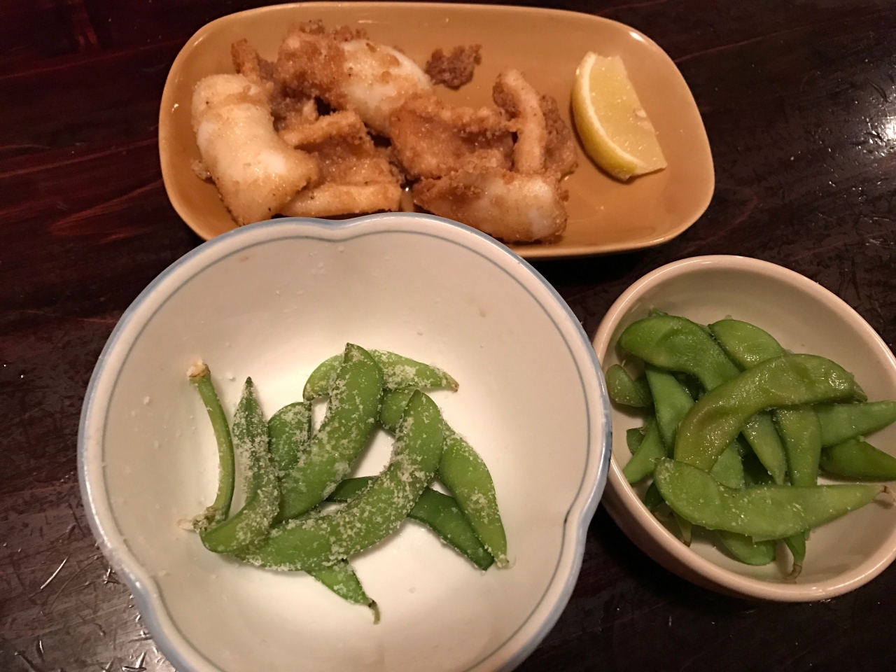ハッピーアワーセットの枝豆と日本酒を頼むと、ちゃんと徳利で出てきました