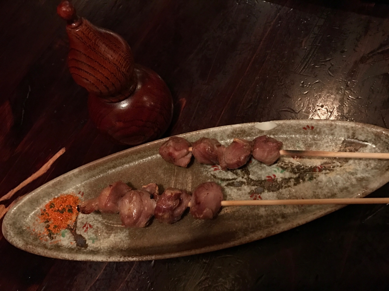 昼を重めに食べたため、あまりお腹もすいていなかったので、他に、生ビール、イカフライ、野菜串、しいたけ串、砂ずり串(串はそれぞれ2本が一人前)で38NZ$