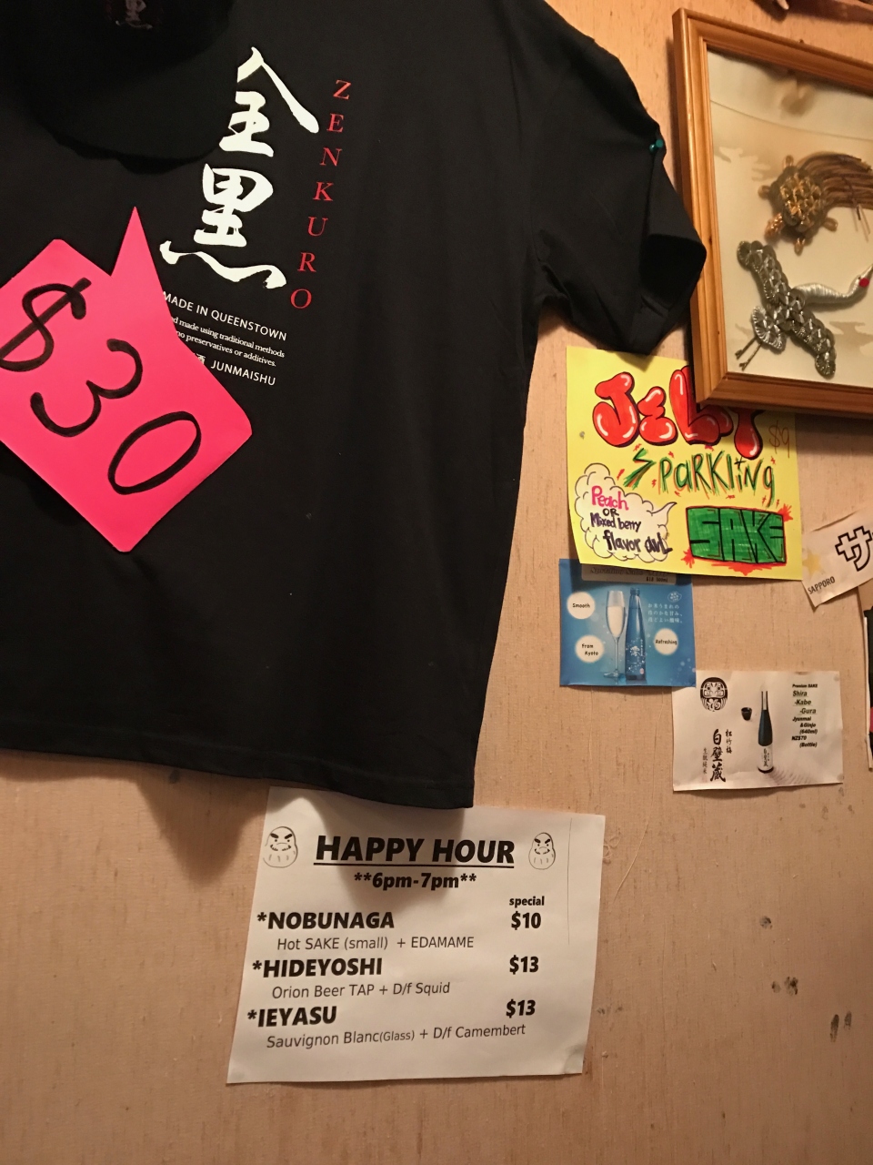 和食が食べたくなり事前にチェックしていたショットオーバー・ストリートのお店に、ハッピーアワー(6~7pm.)に合わせて行ってみました