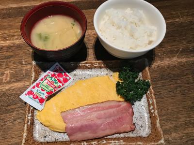 生卵で卵かけご飯の写真が朝食案内のパウチにのっていましたが、我が家は生は食べないのでパス