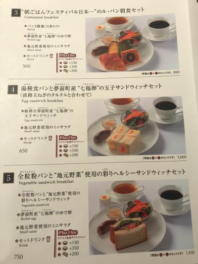 私はどろソースのロースカツと玉子サンドのセット、家内は朝ごはんフェスティバル日本一に輝いたというル・パン朝食セットをいただきました