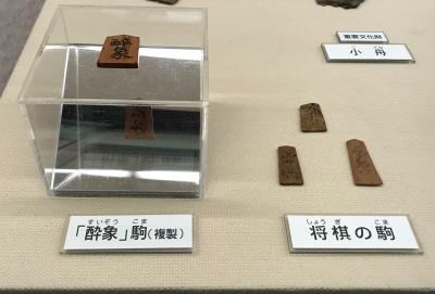 将棋のコマは沢山発掘されており、酔像という王将が取られても負けないための特殊な動きをするコマもあって、興味深いです