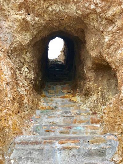 岩山には穴が貫通していて、そこをくぐり抜けると上に登る階段があり、見晴らしの良い展望所に出ることができます
