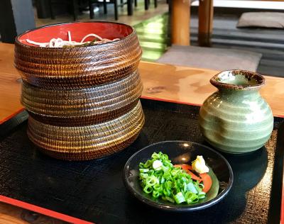 わんこ蕎麦のような小皿ではなくて、普通より少し小さめの器に3団重ねできました