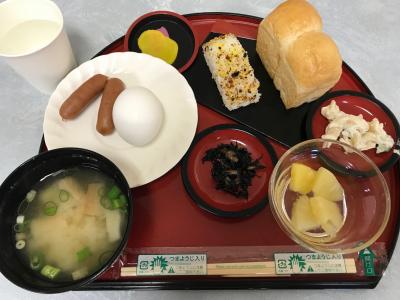 朝食は非常に質素ですが、おにぎりを出すのは効率的で良いです
