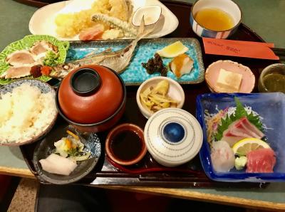 東萩駅のすぐ横にあるホテルに宿泊し、夕食付きで予約していたら、ホテル階下にあるこちらの居酒屋でいただく定食料理でした